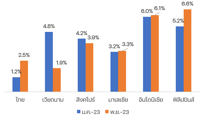 หมายเหตุ: เปรียบเทียบระหว่างวันที่ 3 มกราคม 2023 กับ 6 พฤศจิกายน 2023