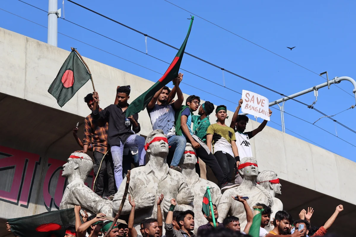 การก้าวลงจากอำนาจของฮาสินาในวันนั้นมีเหตุปัจจัยจากการชุมนุมประท้วงใหญ่ของประชาชนบังกลาเทศ สืบเนื่องจากการที่รัฐบาลประเทศสงวนโควตาในการสอบรับราชการให้กับลูกหลานของบรรดานักต่อสู้เพื่ออิสรภาพของบังกลาเทศในสงครามปี 1971 ถึงกว่าร้อยละ 30 ซึ่งถูกวิจารณ์อย่างหนักว่าไม่เป็นธรรม การประท้วงจึงก่อตัวขึ้นก่อนลุกลามบานปลายไปสู่การใช้ความรุนแรงของทางการในการปราบปรามประชาชน แต่ที่สุดแล้วรัฐบาลฮาสินาก็ไม่อาจต้านทานแรงโกรธเกรี้ยวของประชาชนได้ จนนำไปสู่การลาออกและหนีออกนอกประเทศในที่สุด