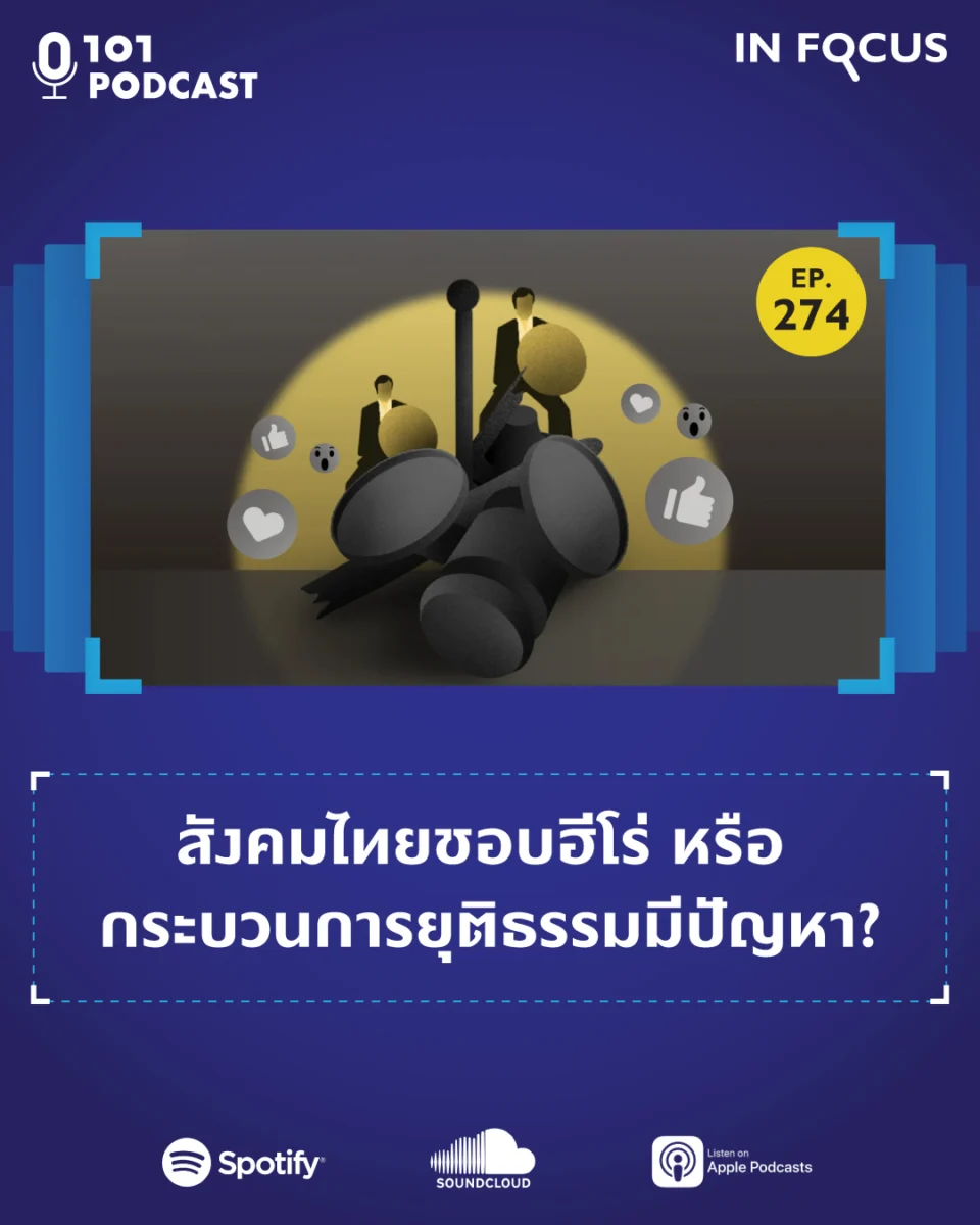 คำถามสำคัญคือ หากสังคมไทยมีระบบกฎหมายที่มีประสิทธิภาพ ตรงไปตรงมา ประชาชนจะยังวิ่งเข้าหา ‘ฮีโร่’ และออกมาแสดงดรสม่าผ่านสื่อโซเชียลเพื่อให้กระบวนการยุติธรรมทำงานหรือไม่ 101 In Focus สัปดาห์นี้ ชวนคุยถึงปรากฏการณ์ฮีโร่ -ทนายอเวนเจอร์ส- ในสังคมไทย พร้อมชวนหาคำตอบว่ากระบวนการยุติธรรมไทยบกพร่องหรือมีปัญหาไหนมิติใดบ้าง ประชาชนยังไว้ใจกระบวนการยุติธรรมไทยอยู่หรือไม่ อย่างไร
