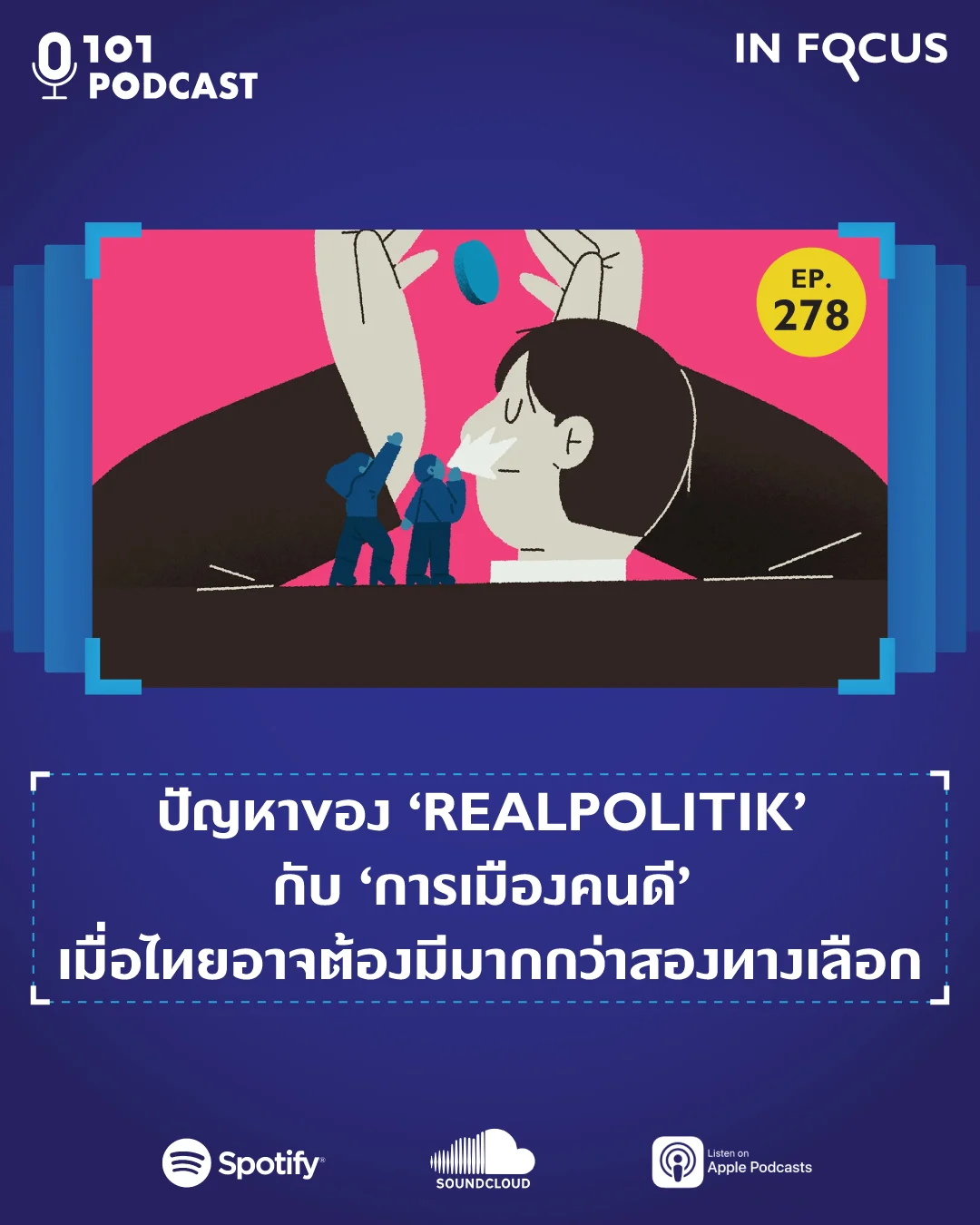 101 In Focus สัปดาห์นี้ ชวนสำรวจข้อถกเถียงว่าด้วย Realpolitik พร้อมตั้งคำถามต่อบทบาทของศีลธรรมในการเมือง การเมืองปลอดศีลธรรมได้จริงหรือไม่? แท้จริงแล้วปัญหาของการใช้ศีลธรรมในการเมืองไทยมีที่มาจากอะไร? และเราจำเป็นต้องเลือกระหว่าง Realpolitik กับศีลธรรมจริงหรือ?