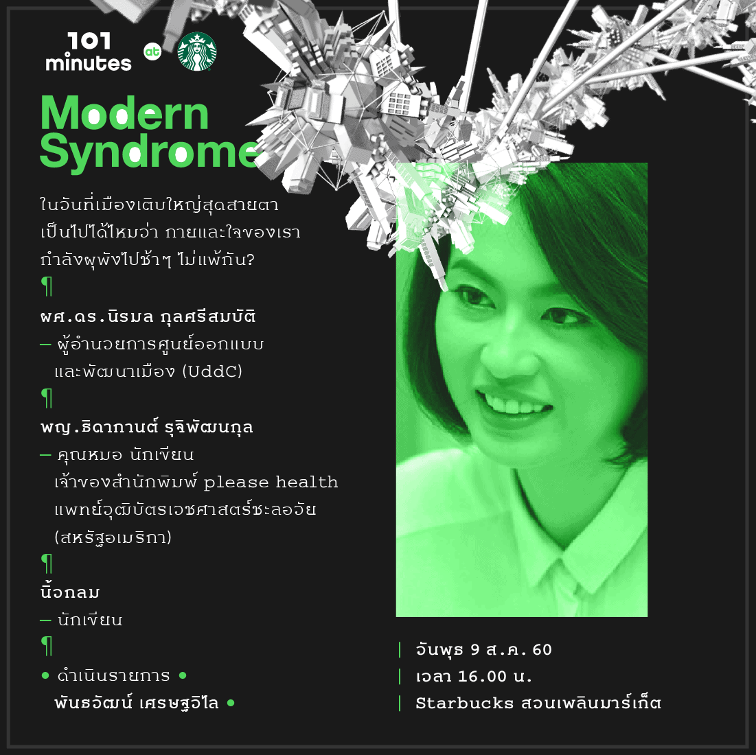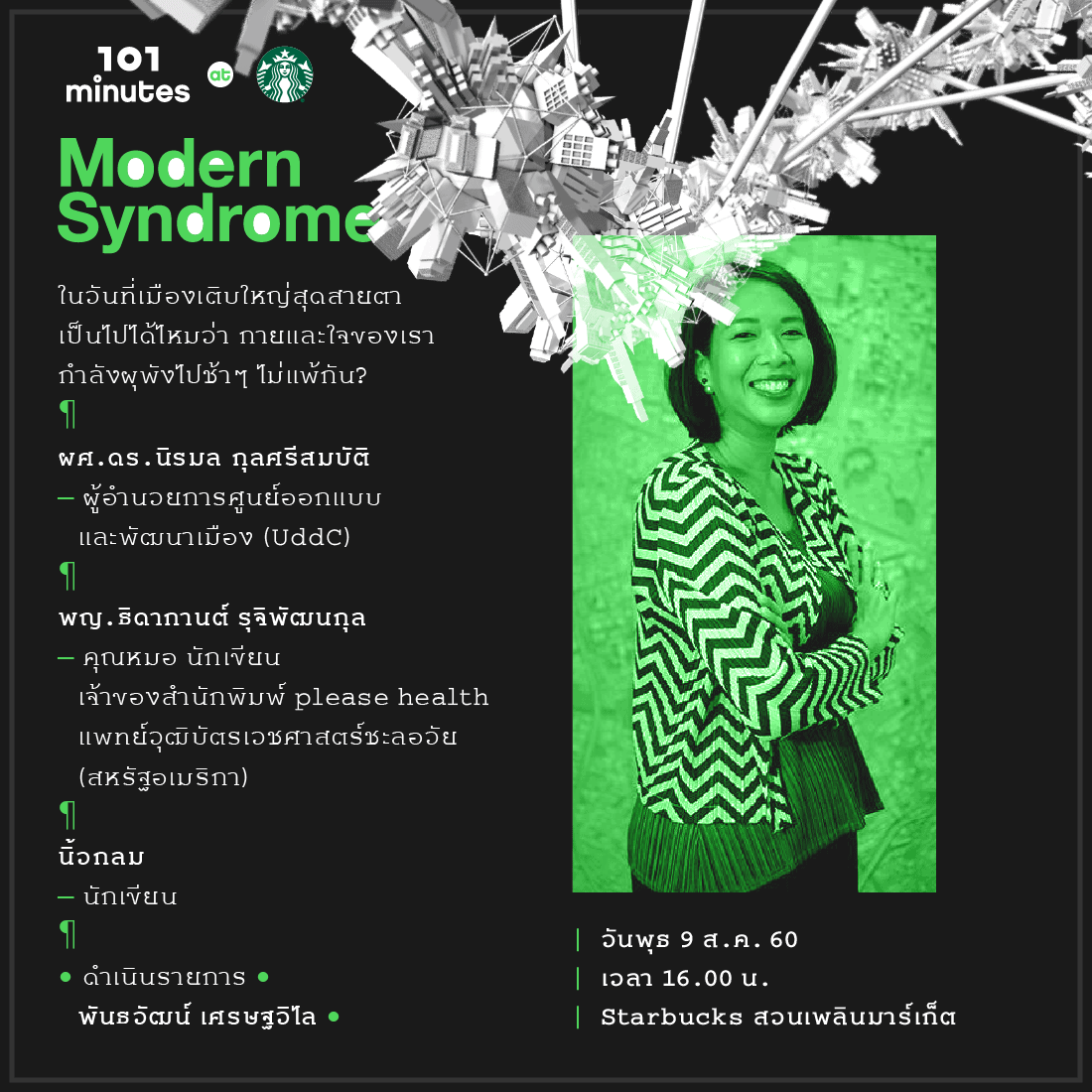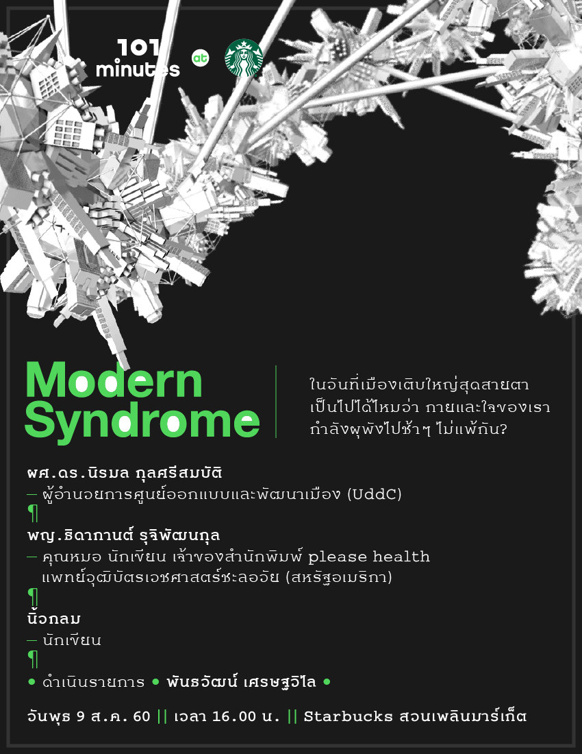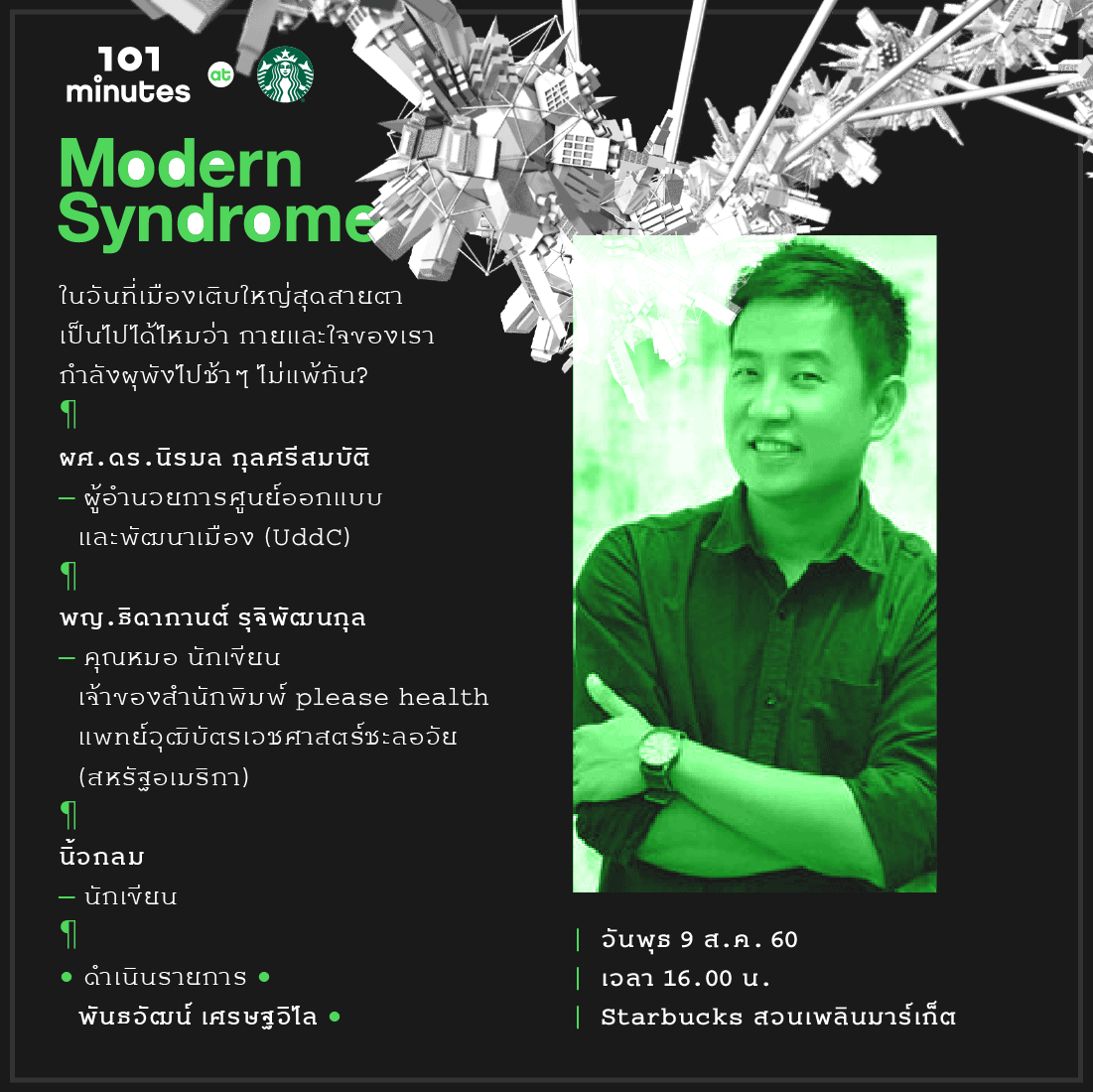 The101.world ขอชวนคุณมาร่วมหาคำตอบ แลกเปลี่ยนประสบการณ์ ‘โรค’ ใน ‘โลกคนเมือง’ กับ 101 minutes at Starbucks ครั้งที่ 4 : Modern Syndrome พร้อมกับแขกรับเชิญผู้เชี่ยวชาญทั้ง 3 คน