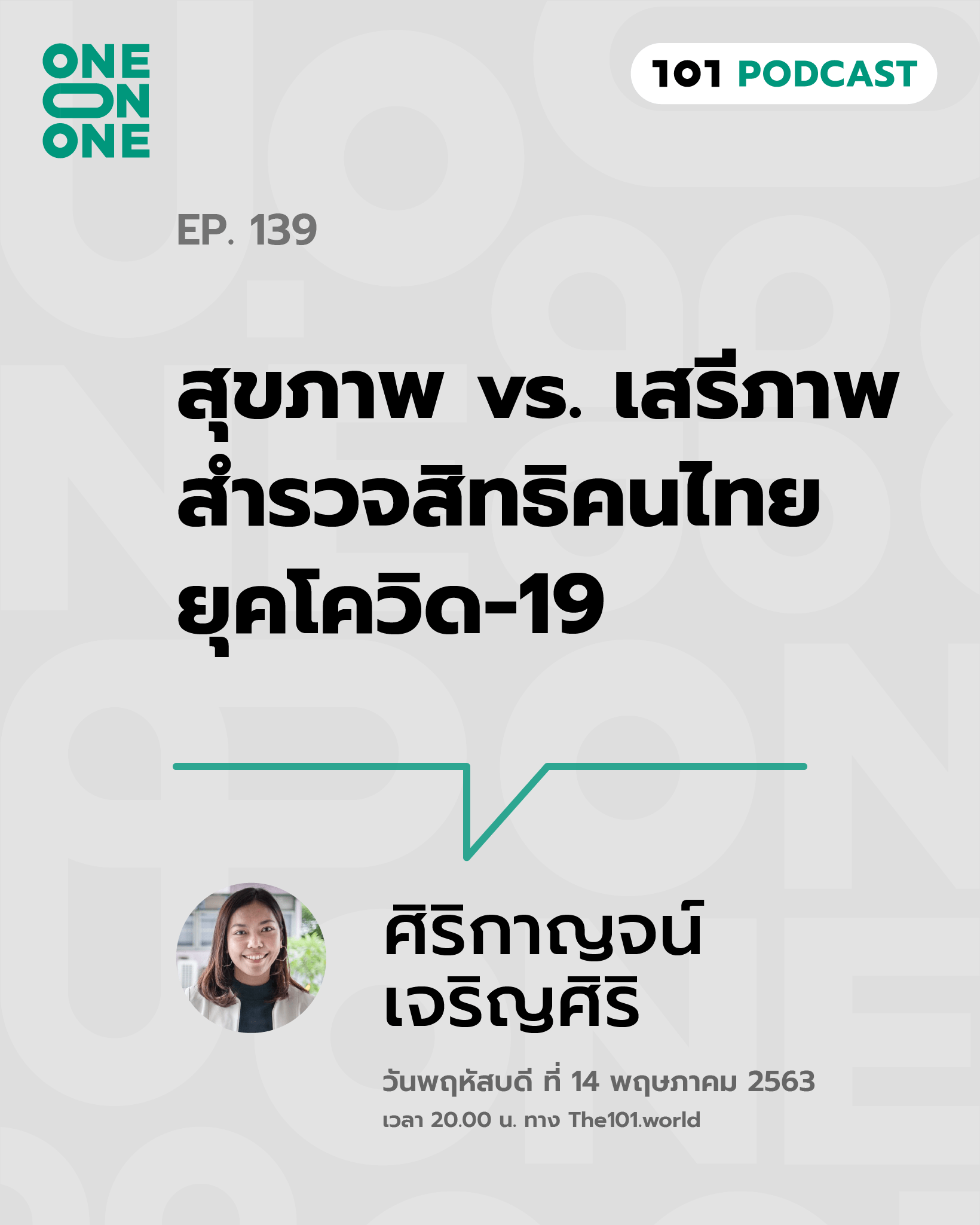 :: podcast :: 101 One-On-One Ep.139 : “สุขภาพ vs. เสรีภาพ สำรวจสิทธิคนไทย ยุคโควิด-19” – ศิริกาญจน์ เจริญศิริ