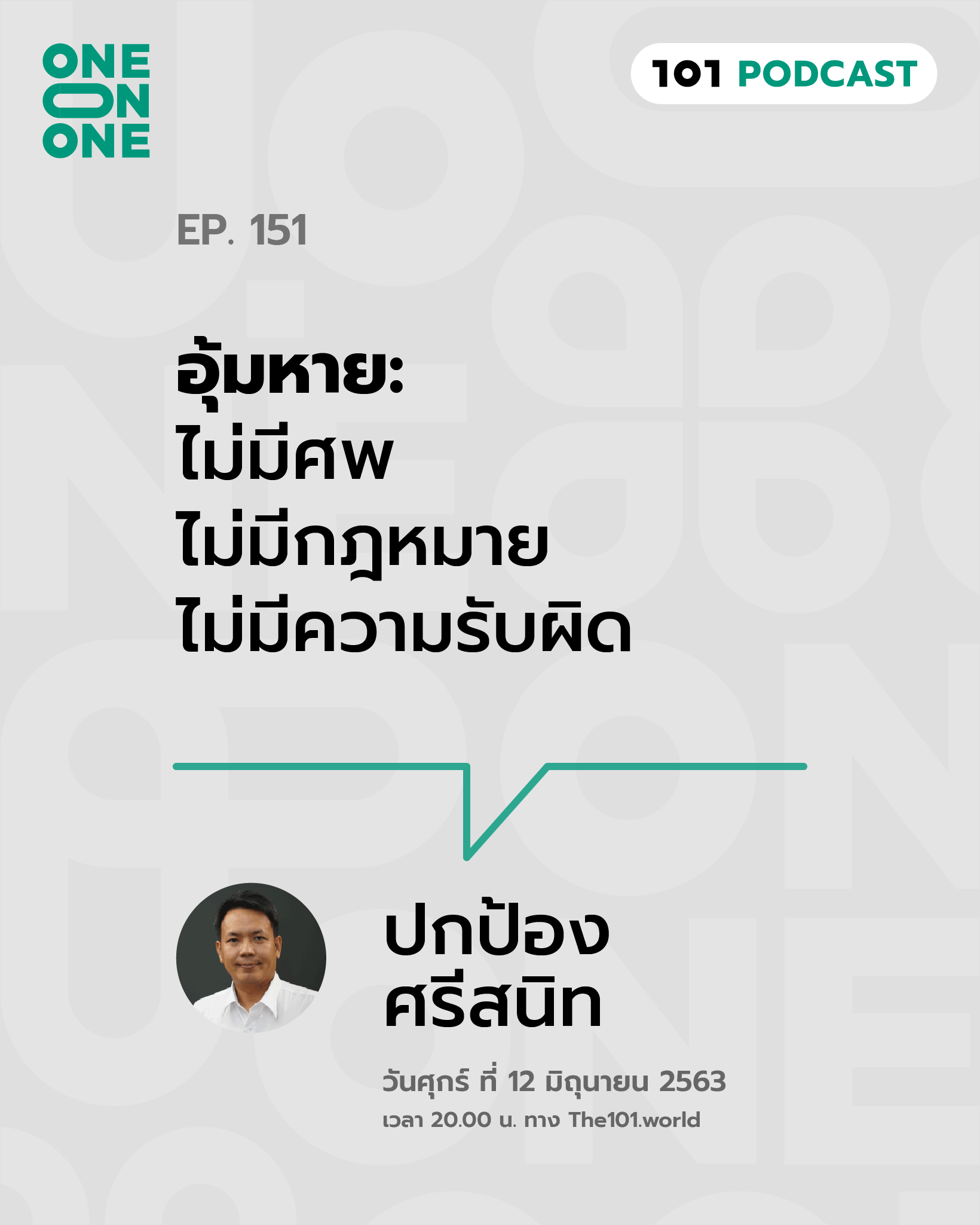 :: podcast :: 101 One-On-One Ep.151 : “อุ้มหาย: ไม่มีศพ ไม่มีกฎหมาย ไม่มีความรับผิด” – ปกป้อง ศรีสนิท