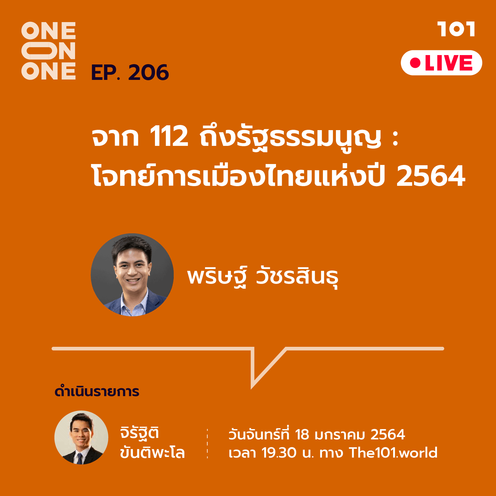 :: LIVE :: 101 One-on-One Ep.206 “จาก ม.112 ถึงรัฐธรรมนูญ : โจทย์การเมืองไทยแห่งปี 2564” กับ พริษฐ์ วัชรสินธุ
