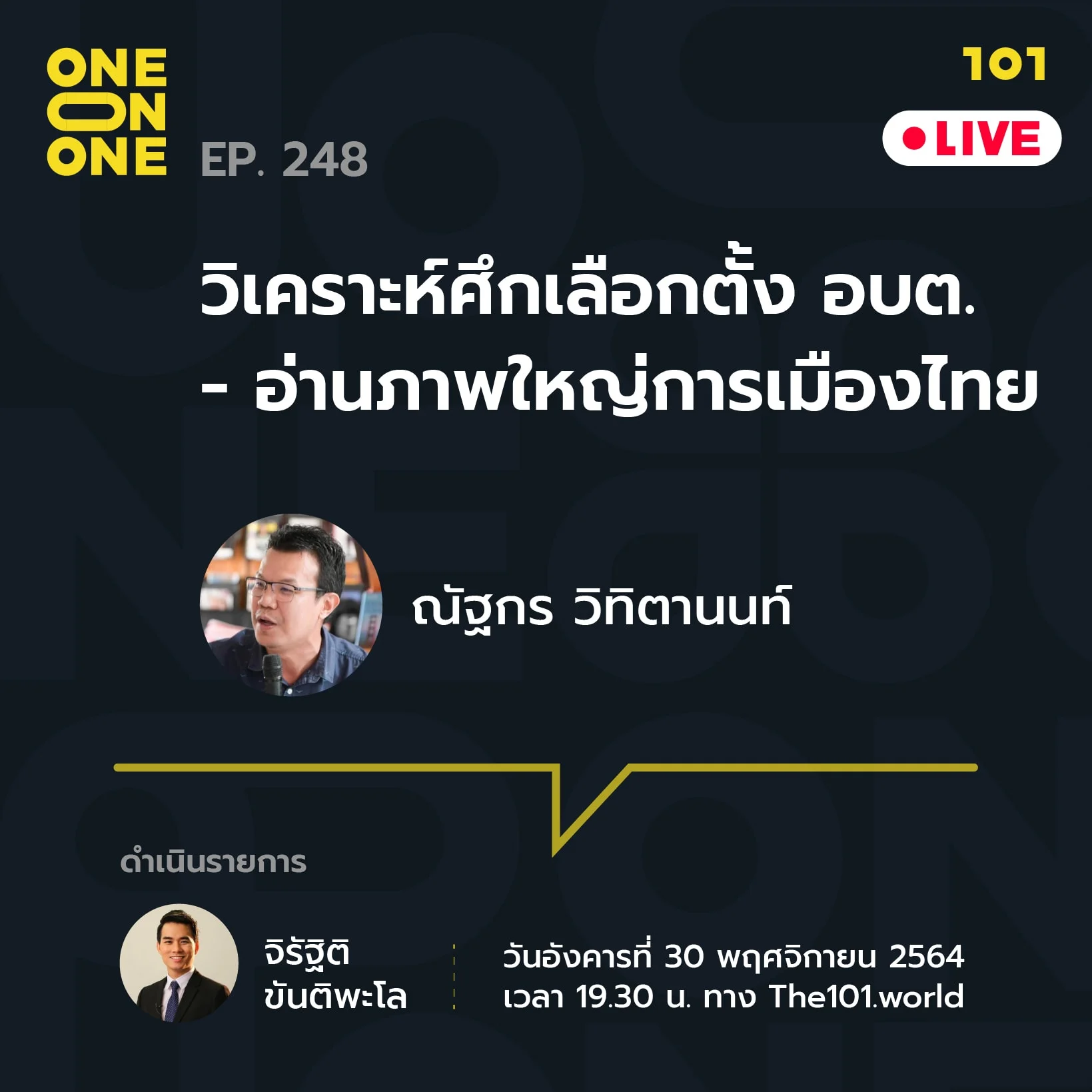 วันอังคารที่ 30 พฤศจิกายน 2564 เวลา 19.30 น. ติดตามพร้อมกันทุกแพลตฟอร์มของ The101.world
