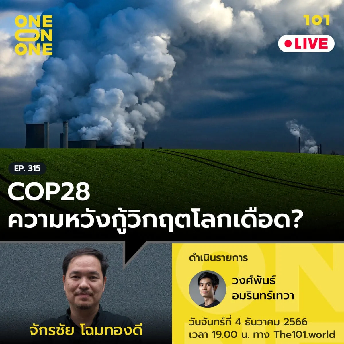 101 One-on-one Ep.315 COP28 ความหวังกู้วิกฤตโลกเดือด? กับ จักรชัย โฉมทองดี