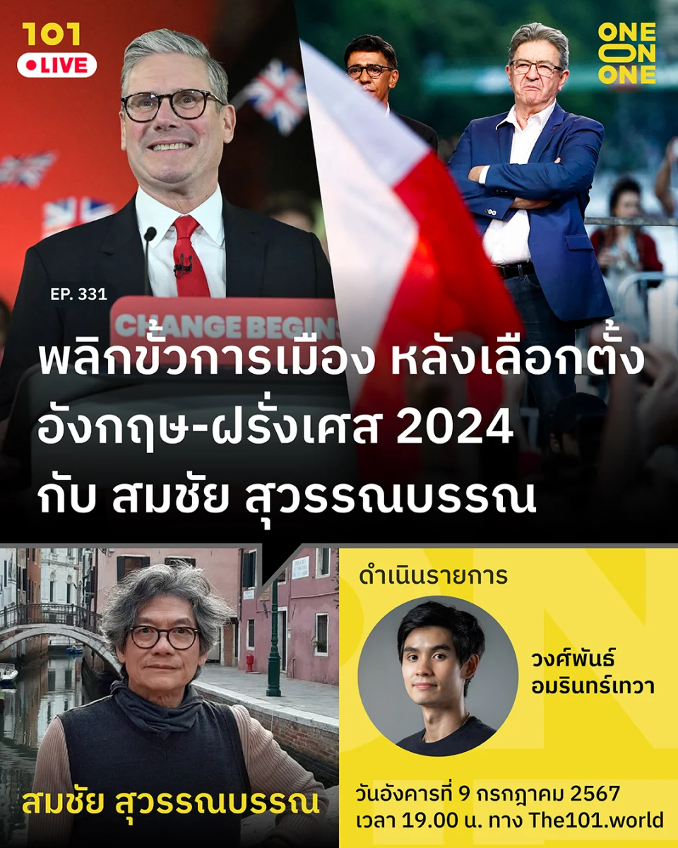ผลเลือกตั้งพลิกแผ่นดินของทั้งอังกฤษและฝรั่งเศสนี้จะนำอนาคตการเมืองทั้งสองประเทศเดินไปทิศทางไหน และมีนัยต่อยุโรปและโลกอย่างไร? 101 ชวน สมชัย สุวรรณบรรณ อดีตบรรณาธิการข่าวเอเชียตะวันออกเฉียงใต้ วิทยุบีบีซี ลอนดอน และอดีตผู้อำนวยการองค์การกระจายเสียงและแพร่ภาพสาธารณะแห่งประเทศไทย (ไทยพีบีเอส) มาพูดคุยกันในเรื่องนี้