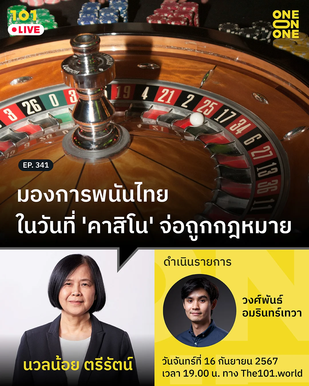 101 จึงชวน รศ.ดร.นวลน้อย ตรีรัตน์ อาจารย์คณะเศรษฐศาสตร์ จุฬาลงกรณ์มหาวิทยาลัย และผู้อำนวยการศูนย์ศึกษาปัญหาการพนัน มาสำรวจสภาวะการพนันไทยในปัจจุบัน และชวนวิเคราะห์ว่าหากประเทศไทยมีคาสิโนถูกกฎหมาย จะส่งผลอย่างไร หรือจะมีแนวทางไหนที่ทำให้เรามีมาตรการรองรับเรื่องนี้อย่างรัดกุมพอเพื่อไม่ก่อให้เกิดปัญหาตามมาในอนาคต