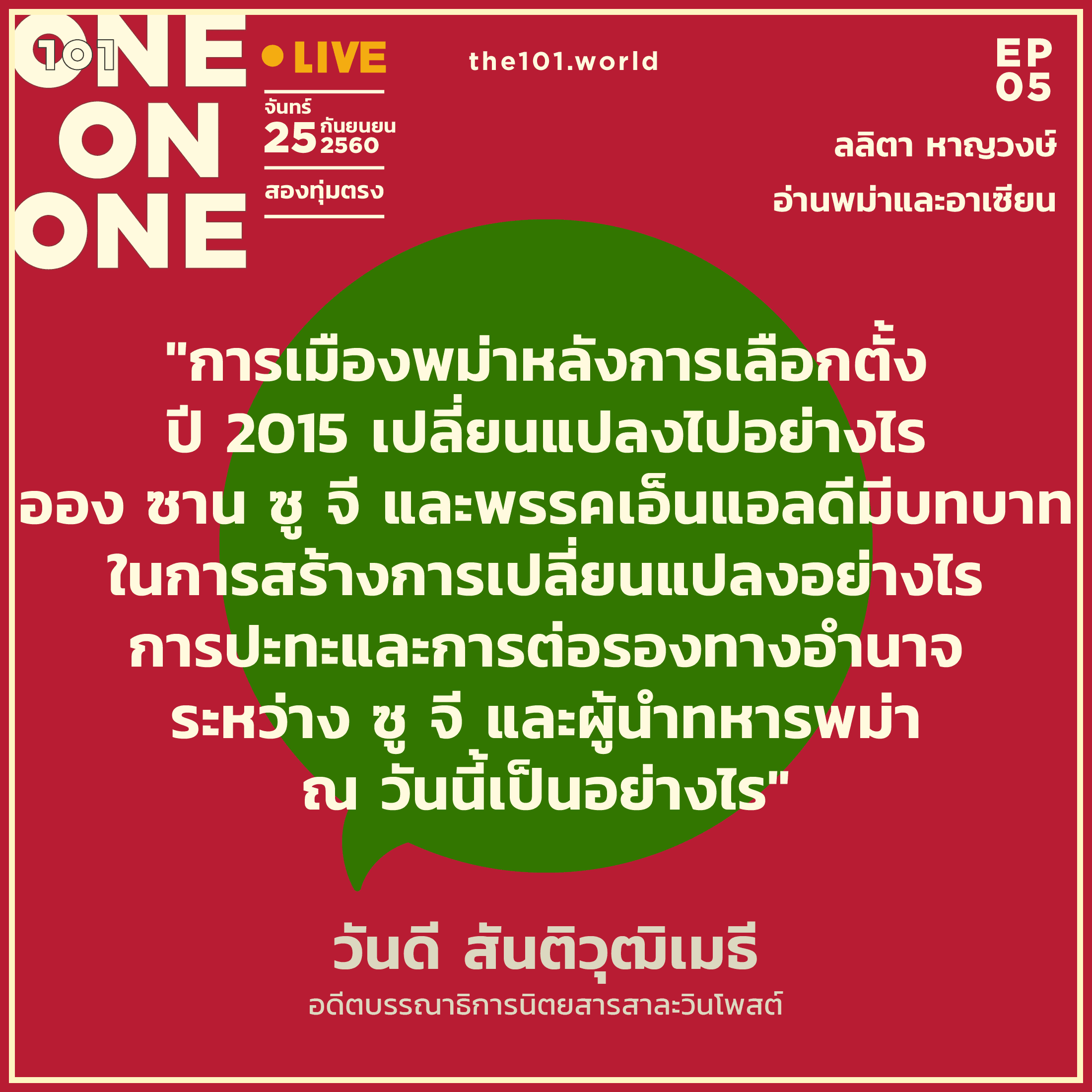 เชิญคุณผู้อ่านและคุณผู้ชม 101 ร่วมชวนคุย ร่วมตั้งคำถาม ร่วมหาคำตอบ ร่วมแลกเปลี่ยนความคิด และร่วมอ่าน “พม่าและอาเซียน” กับ ลลิตา หาญวงษ์ แบบสดๆ คืนวันจันทร์ที่ 25 ก.ย. เวลาสองทุ่ม