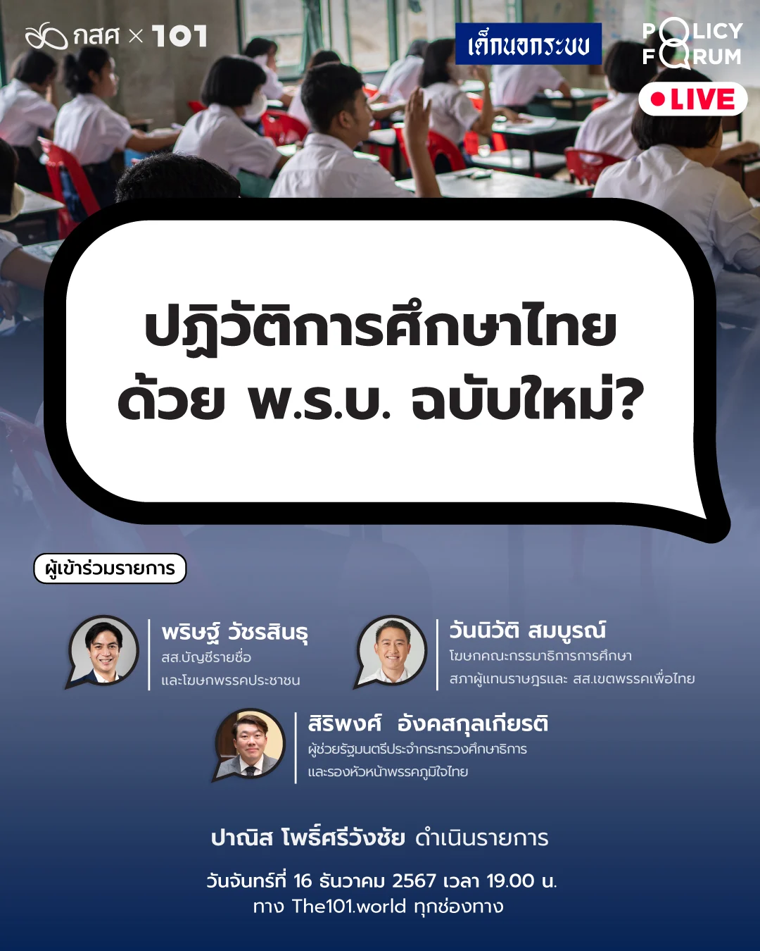 วันจันทร์ที่ 16 ธันวาคม 2567 เวลา 19.00 น. ทาง The101.world