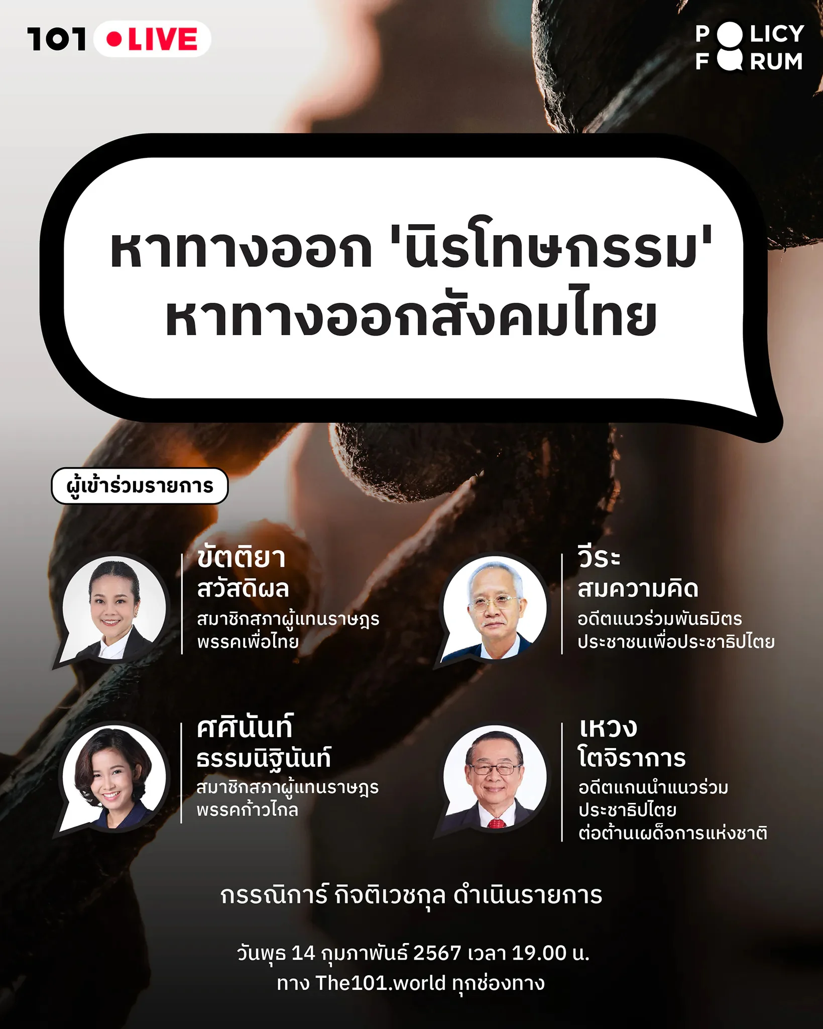 101 Policy Forum #20 หาทางออก ‘นิรโทษกรรม’ หาทางออกสังคมไทย
