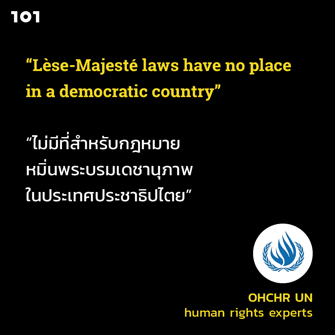 ข้อความดังกล่าวคือส่วนหนึ่งจากประกาศแสดงความกังวลของสํานักงานข้าหลวงใหญ่เพื่อสิทธิมนุษยชนแห่งองค์การสหประชาชาติ ณ วันที่ 8 กุมภาพันธ์ 2021 โดย Irene Khan ผู้รายงานพิเศษขององค์การสหประชาชาติ ด้านเสรีภาพในแสดงออก Leigh Toomey, Elina Steinerte, Miriam Estrada-Castillo, Mumba Malila และ Seong-Phil Hong จากคณะทำงานสหประชาชาติว่าด้วยการควบคุมตัวโดยพลการ และ Clément Voule ผู้รายงานพิเศษขององค์การสหประชาชาติ ด้านสิทธิ เสรีภาพในการรวมกลุ่มและการชุมนุม