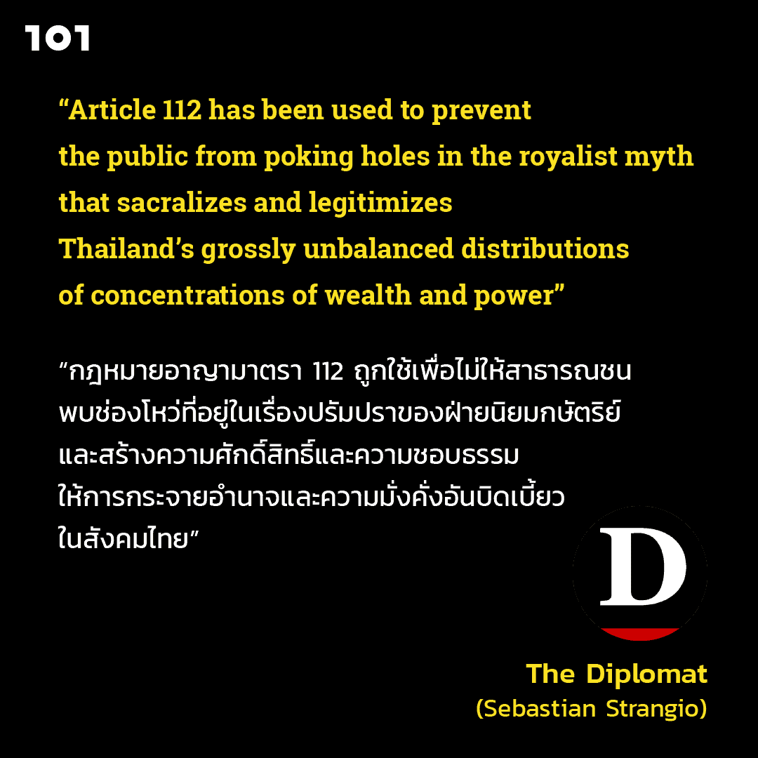 ในวันที่ ม.112 กลับขึ้นมาอยู่หน้าฉากการเมืองไทยอีกครั้ง 101 ชวนสำรวจมุมมองของสื่อต่างประเทศหลากหลายสำนักจากทั่วโลกและองค์กรระหว่างประเทศต่อกฎหมายหมิ่นพระบรมเดชานุภาพพระมหากษัตริย์ในไทยในรอบทศวรรษที่ผ่านมา