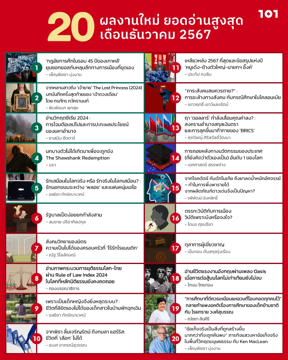 101 PUB ชวนสำรวจว่ารัฐบาลเดินหน้านโยบาย ‘ซอฟต์พาวเวอร์’ หรือ ‘เศรษฐกิจสร้างสรรค์’ แบบใด? และไปถึงไหน? มีประเด็นอะไรที่น่าจับตาต่อไปในปีหน้า