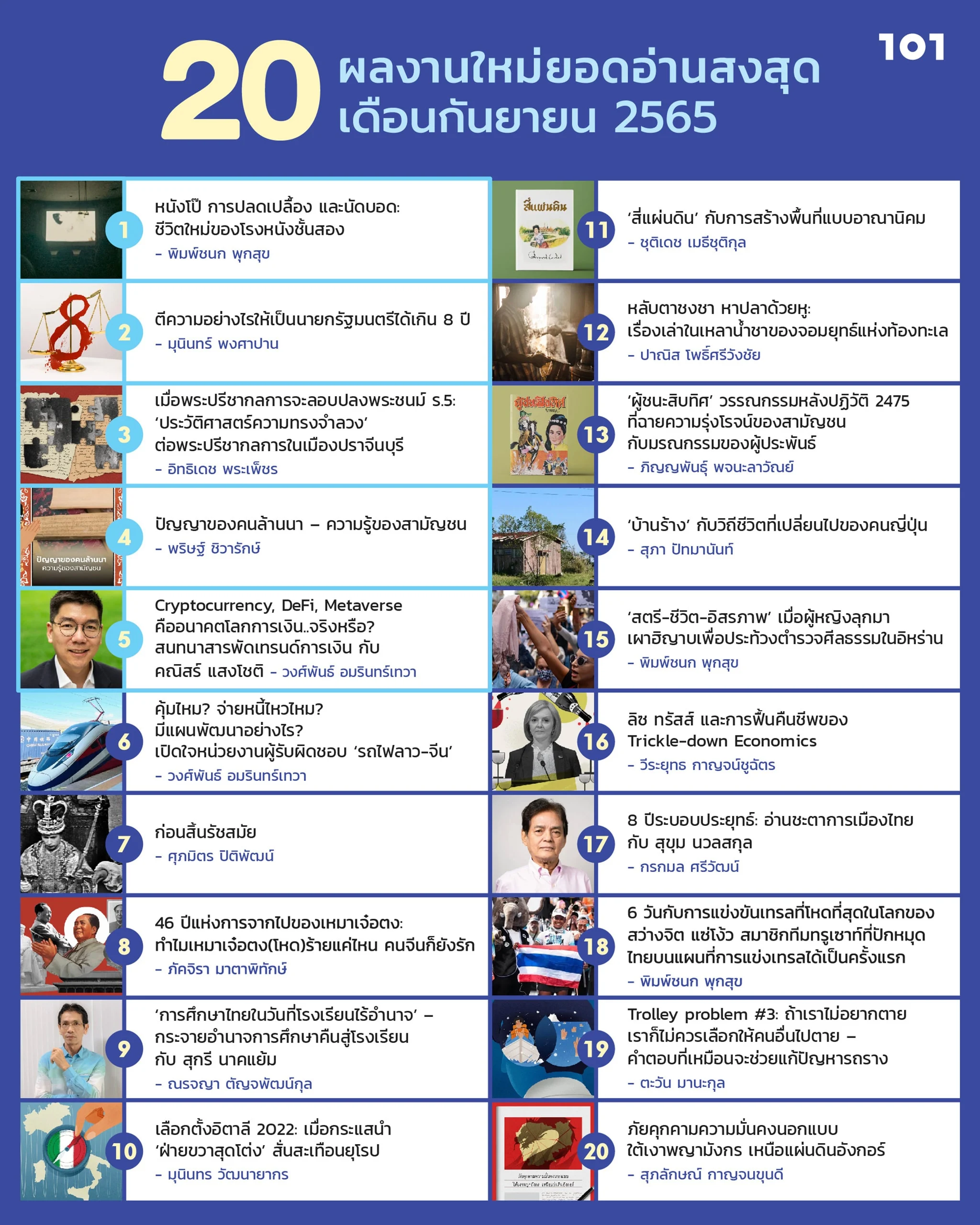 20 ผลงานใหม่ ยอดอ่านสูงสุดของ The101.World เดือนกันยายน 2565