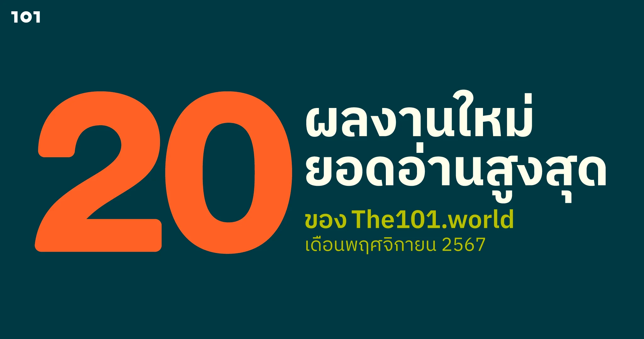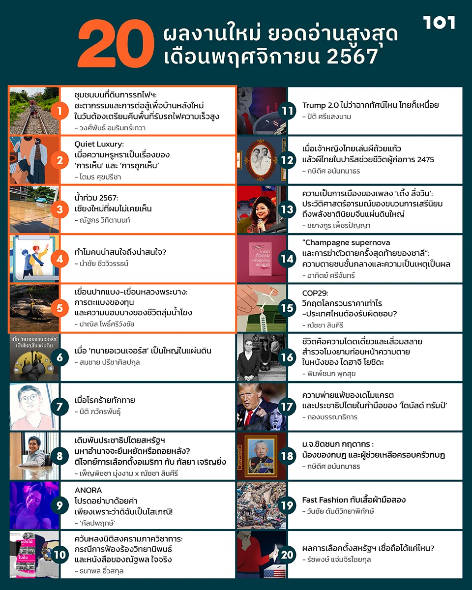 20 ผลงานใหม่ ยอดอ่านสูงสุดของ The101.World เดือนพฤศจิกายน 2567