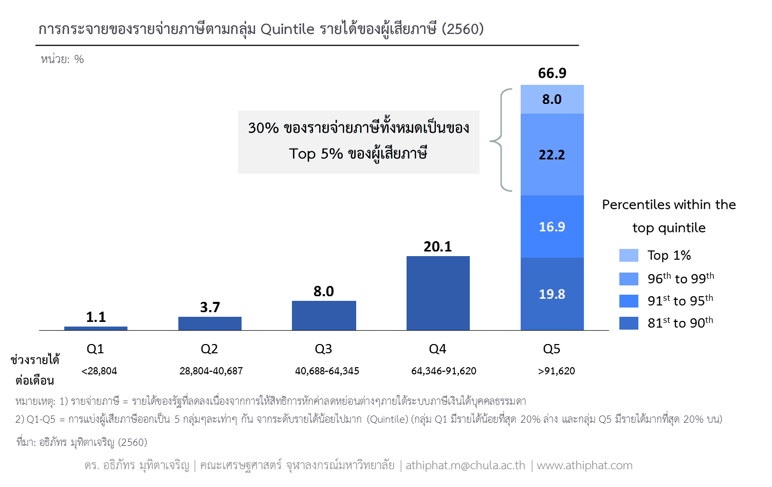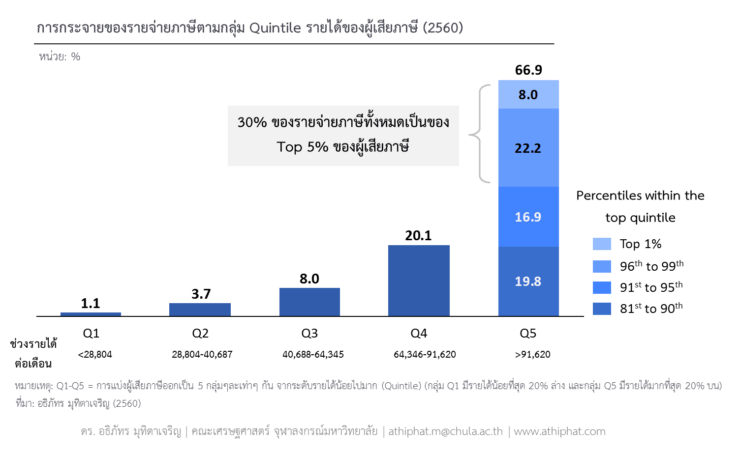 รูปที่ 4 การกระจายของรายจ่ายภาษีตามกลุ่ม Quintile รายได้ของผู้เสียภาษี (2560)