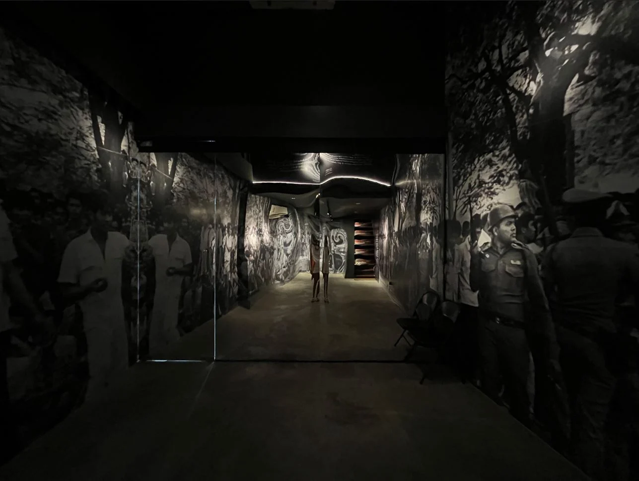 เมื่อเปิดประตูเข้าไปด้านใน เราจะพบกับห้องแรกของนิทรรศการที่ภาพถ่ายถูกอัดขยายจนมีขนาดเท่าคนจริงติดตั้งอยู่เต็มพื้นที่ จากพื้นจรดเพดาน สร้างบรรยากาศราวกับว่าเราได้ย้อนเวลาเข้าไปอยู่ท่ามกลางเหตุการณ์ในวันนั้น ขนาดเท่าจริงของผู้คน ต้นไม้ และวัตถุต่างๆ ในภาพให้ความสมจริงในแง่ของสัดส่วน ยิ่งไปกว่านั้นยังมีกระจกที่ติดอยู่บนผนังบางส่วนที่สะท้อนเงาของเรากลับเข้าไปข้างในภาพด้วย[iii]