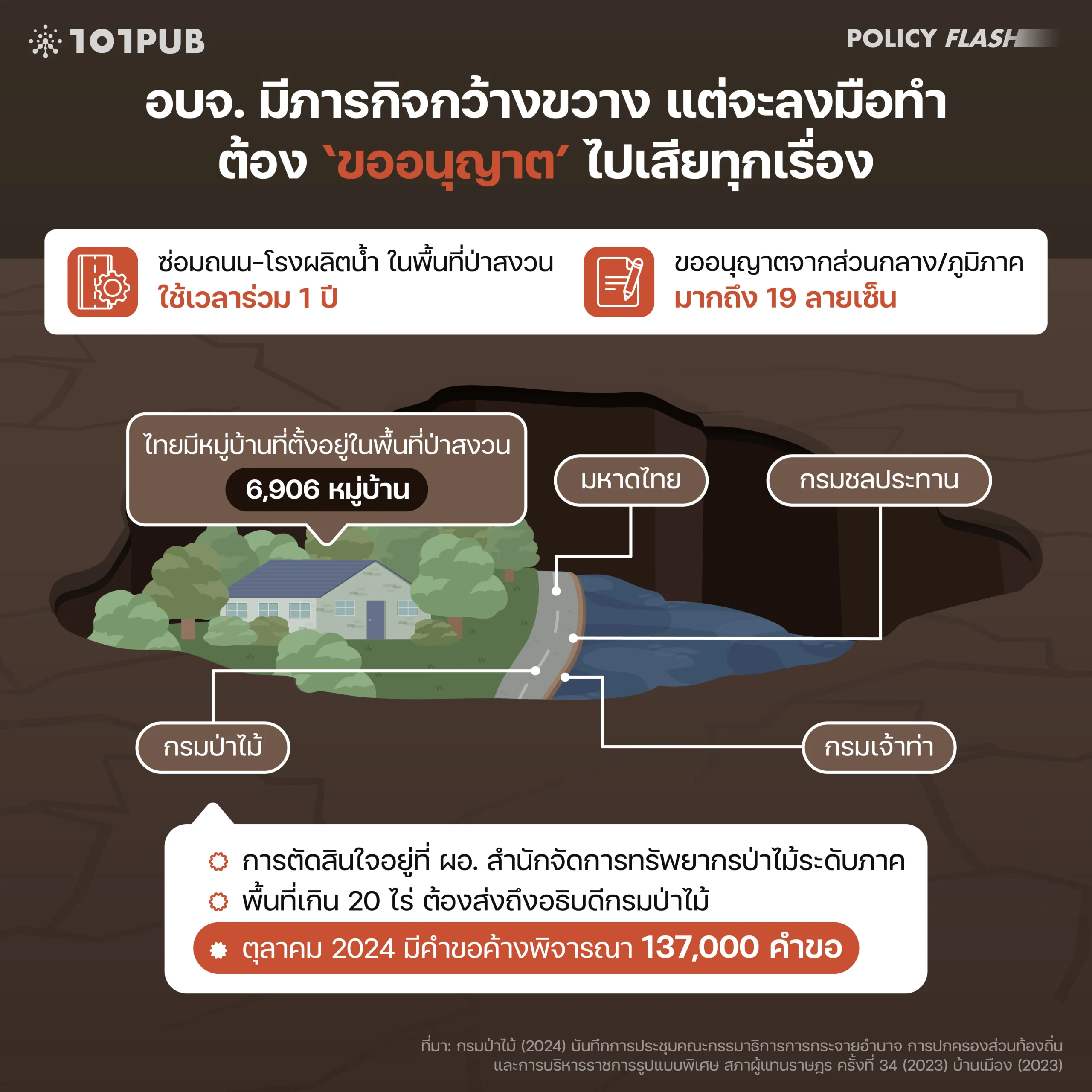 อำนาจที่ทับซ้อนกันอยู่นี้ส่งผลให้มีคำขออนุญาตจากท้องถิ่นค้างพิจารณาอยู่กับกรมป่าไม้หลายแสนเรื่อง แม้จะมีความพยายามในการเร่งรัดเพื่อแก้ไขข้อติดขัดนี้บ้างแล้วในปีที่ผ่านมา แต่ข้อมูลล่าสุดเมื่อเดือนตุลาคม 2024 พบว่ายังคงมีการค้างพิจารณาอยู่มากถึง 137,000 คำขอ[8]