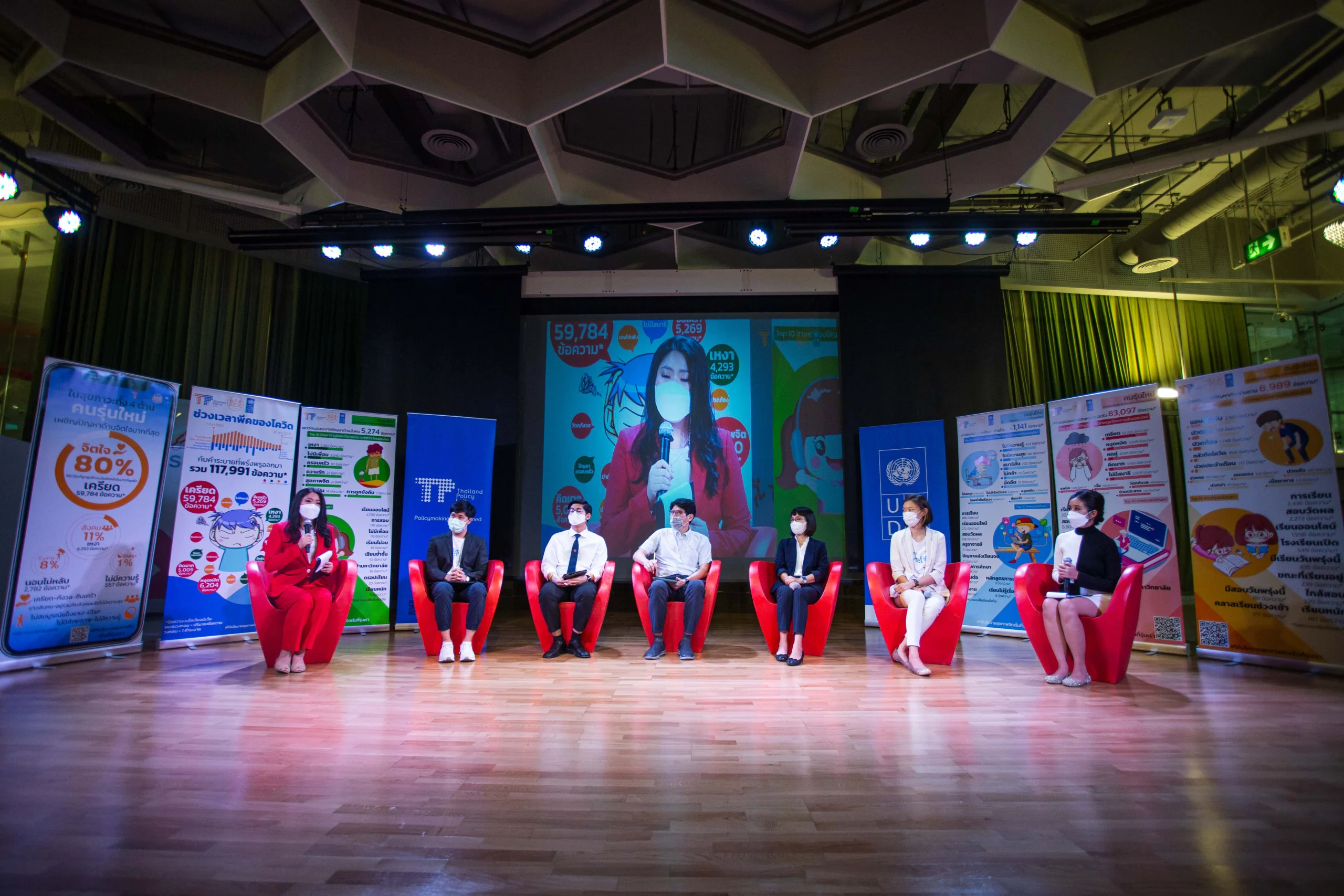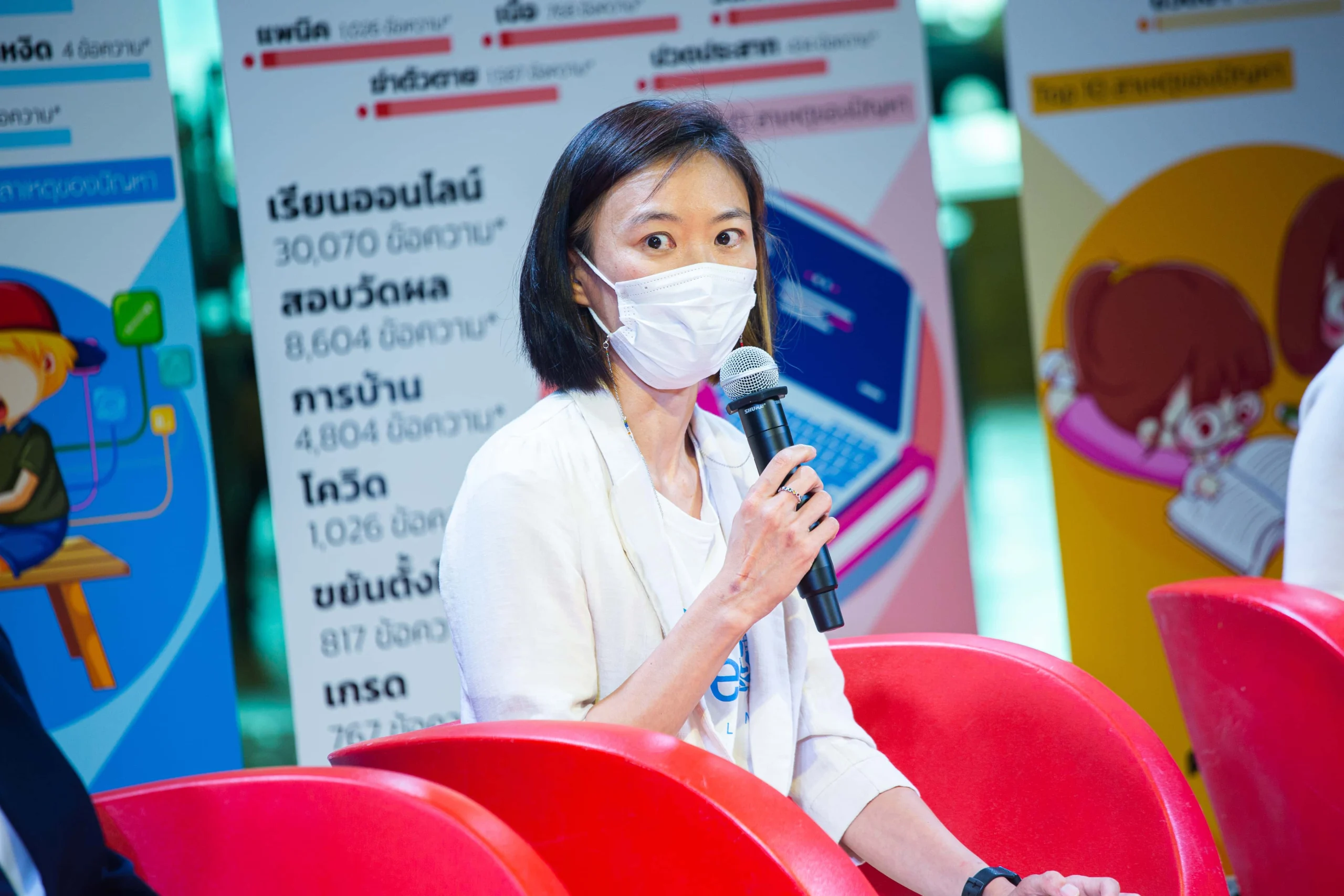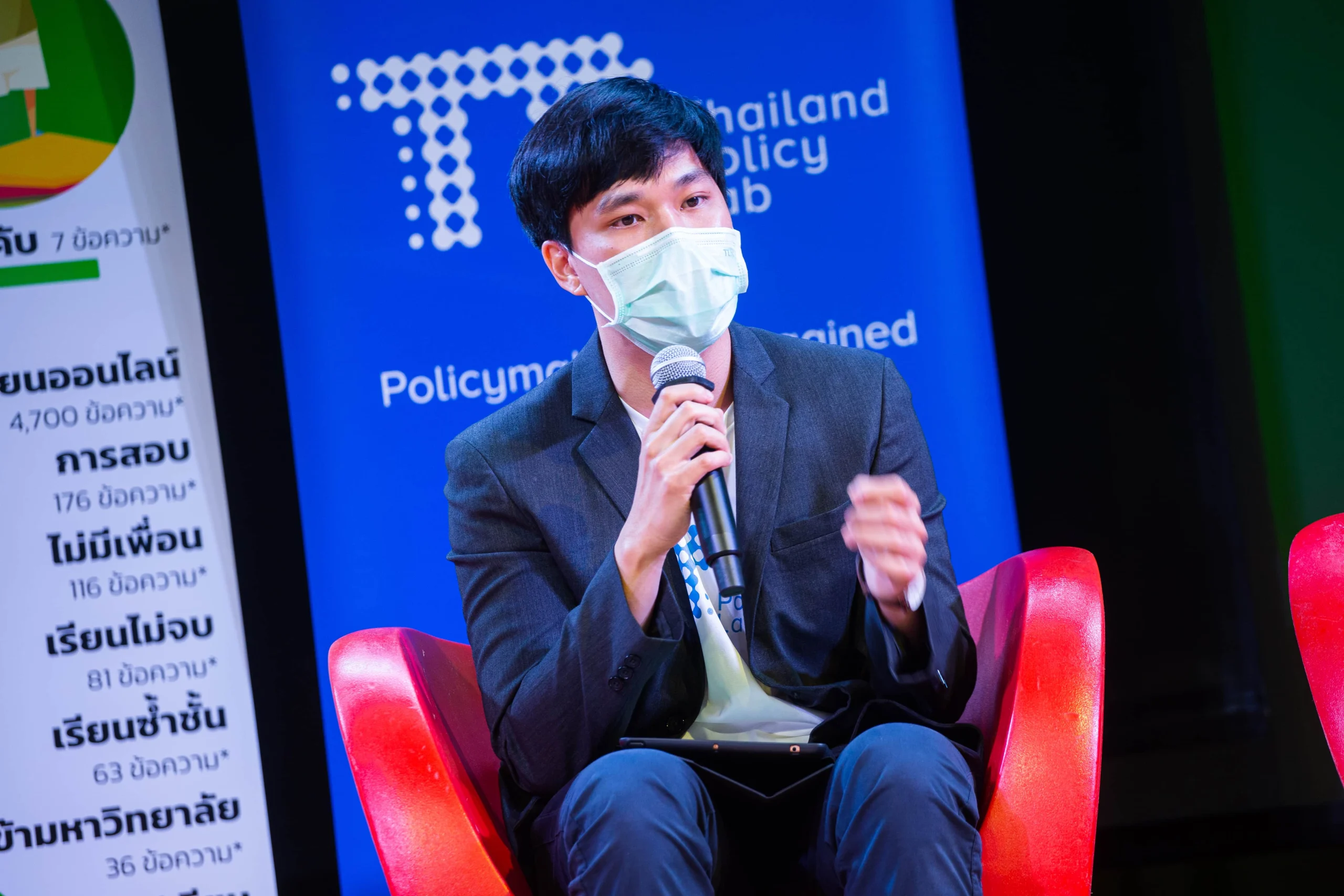 เมแยร์กล่าวไว้ก่อนวางไมค์ว่า “เราไม่ควรทำแค่พูดถึงมัน แต่เราควรถามถึงหน้าตาของนโยบายที่จะให้ความช่วยเหลือแก่พวกเขา” และ “การเปิดเรียนออนไซต์ไม่ได้หมายความว่าปัญหาเหล่านี้จะคลี่คลายหมดไป” งานเสวนา ‘“เปิดหน้าปัญหาสุขภาพจิตคนรุ่นใหม่” โลกไปไกล นโยบายไทยต้องปรับตาม’ จึงเกิดขึ้นในเวทีเดียวกันเพื่อพูดคุยและหาทางออกให้กับปัญหาสุขภาพจิตของวัยรุ่นที่กำลังเกิดขึ้นเป็นวงกว้าง กับวิทยากรรับเชิญจากหลากหลายองค์กร ทั้ง ศิริรัฐ ชุณศาสตร์ ผู้เชี่ยวชาญการพัฒนาวัยรุ่น UNICEF THAILAND ณัฐยา บุญภักดี ผู้อำนวยการสำนักสนับสนุนสุขภาวะเด็ก เยาวชน และครอบครัว สสส. อรรถพล อนันตวรสกุล อาจารย์ประจำคณะครุศาสตร์ จุฬาลงกรณ์มหาวิทยาลัย ศุภวุฒิ แพร่แสงเอี่ยม นักศึกษาชั้นปีที่ 1 มหาวิทยาลัยธรรมศาสตร์ และพงศ์ปณต ดีคง ผู้ช่วยด้านนวัตกรรมสังคมและนโยบาย Thailand Policy Lab