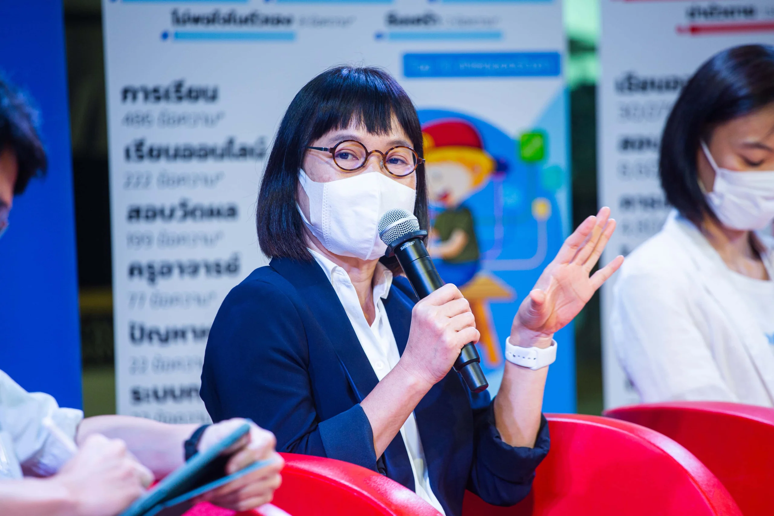 “แต่ภายใต้รอยยิ้มก็มีปัญหาที่ต้องขบคิด” อรรถพลย้ำ เขาแสดงความกังวลถึงทักษะทางสังคม การสื่อสาร กระทั่งทักษะการเขียนอ่านที่หายไปเมื่อนักเรียนต้องเรียนออนไลน์มากว่าสองปี ที่สำคัญ เราต้องไม่หลงลืมว่าในสถานการณ์ฝุ่นตลบที่ผ่านมา ระบบการศึกษาล้มเหลวในการช่วยเหลือนักเรียนซึ่งมีปัญหาสุขภาพจิตหลายครั้งหลายครา