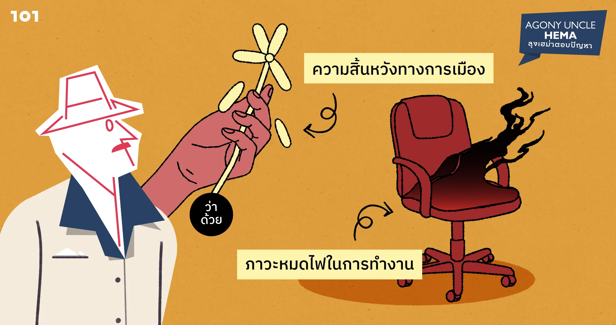 สวัสดีครับลุงเฮม่า ผมจะรับมือกับภาวะเบิร์นเอาต์จากการทำงานอย่างไรดีครับ ทำไปก็เงินเดือนประมาณนี้ ไม่มากไม่น้อยไปกว่านี้ เศรษฐกิจก็แย่ ตั้งตัวก็ยาก ผมท้อมากเลยครับ – เนม
