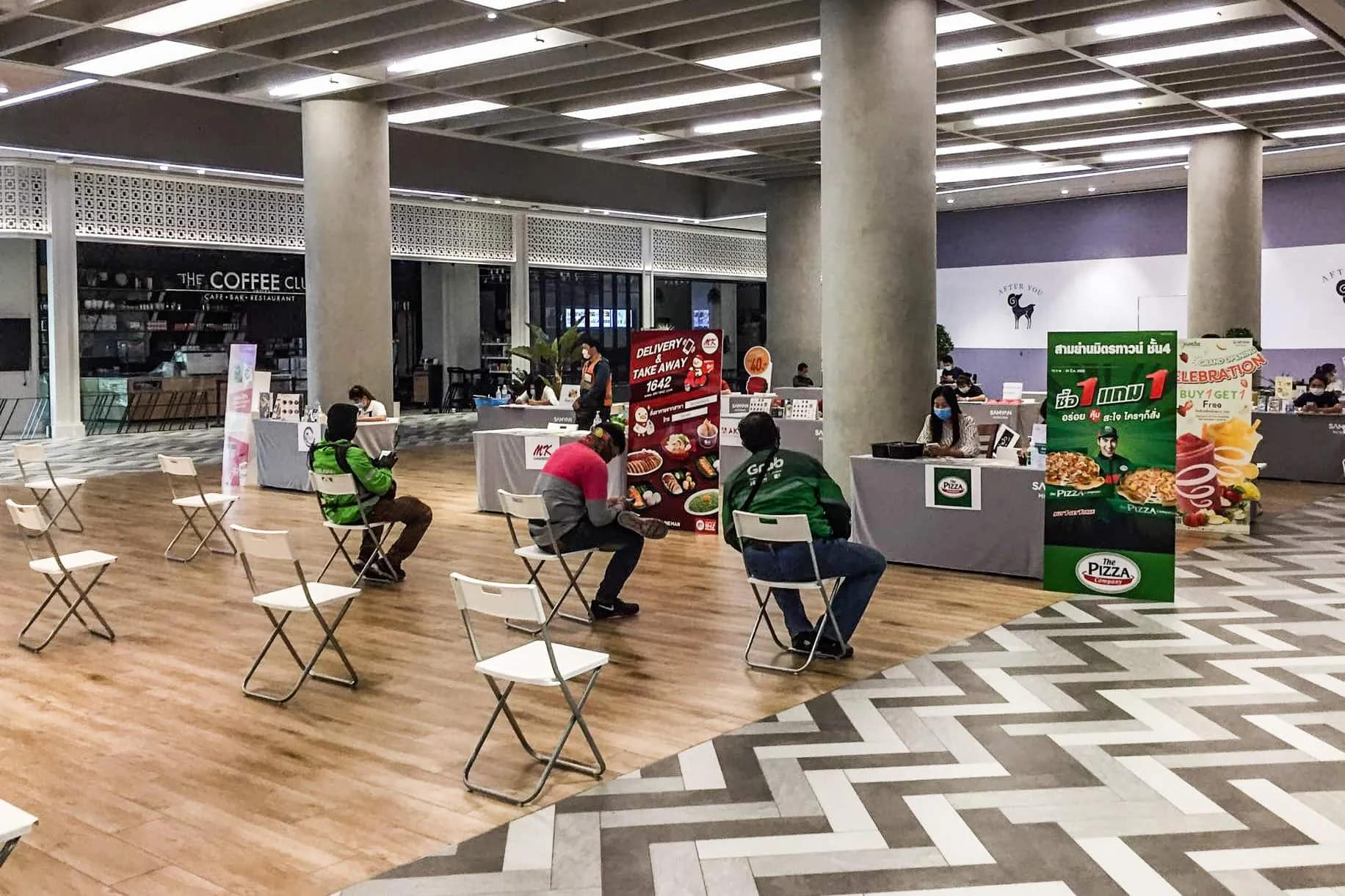ไม่มีอะไรมาก เท่าที่ติดตามมีการแจกเจลล้างมือในจำนวนจำกัด ช่วงที่ภาครัฐพูดถึงความเสี่ยงของคนส่งอาหาร บริษัทก็ออกมาตรการว่าถ้าจะส่งงานต้องถ่ายรูปที่มีผ้าปิดจมูก หากใครไม่มีบริษัทจะส่งให้โดยคิดค่าส่งไปรษณีย์ 35 บาท และเขาไม่ได้มีหลักปฏิบัติที่ชัดเจนเรื่องการไปรอที่ร้านอาหาร กลายเป็นภาระของร้าน ตามห้างก็มีการจัดสถานที่ให้ร้านมารับออเดอร์ในโถงโล่ง และให้นั่งรอห่างๆ กัน