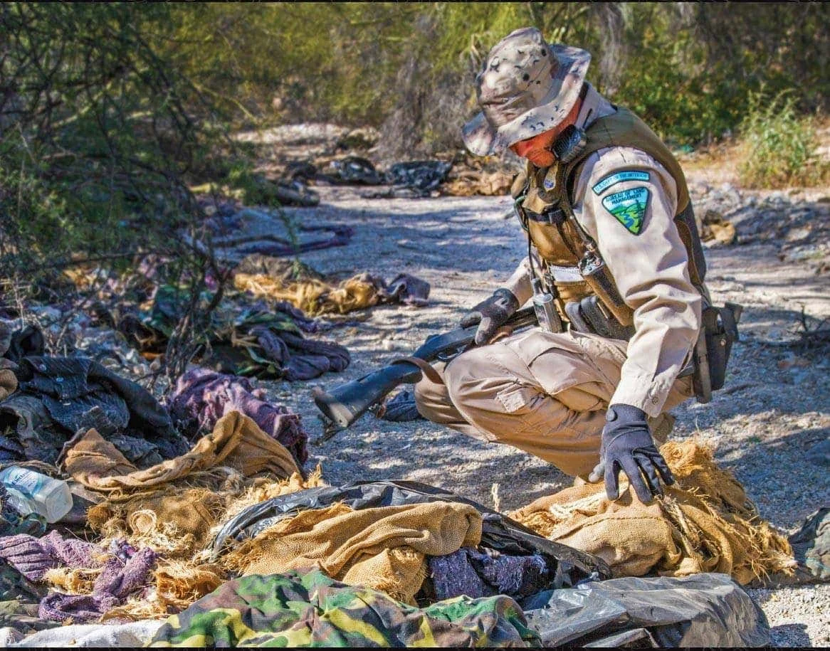 หลักฐานทางวัตถุของแรงงานนอกระบบที่หลงเหลือบนพื้นทรายในทะเลทรายโซโนรา เผยให้เห็นถึงช่วงเวลาสุดท้ายของชีวิตที่หายไปจากบันทึกและความทรงจำของญาติมิตรต่อผู้ตาย กองข้าวของที่กระจัดกระจายและวัตถุสีจางจากแดดทะเลทราย เผยให้เห็นความคิดและมุมมองส่วนบุคคลต่อการเดินทางข้ามทะเลทรายที่ได้กลายเป็นการเดินทางครั้งสุดท้ายในหลายกรณี