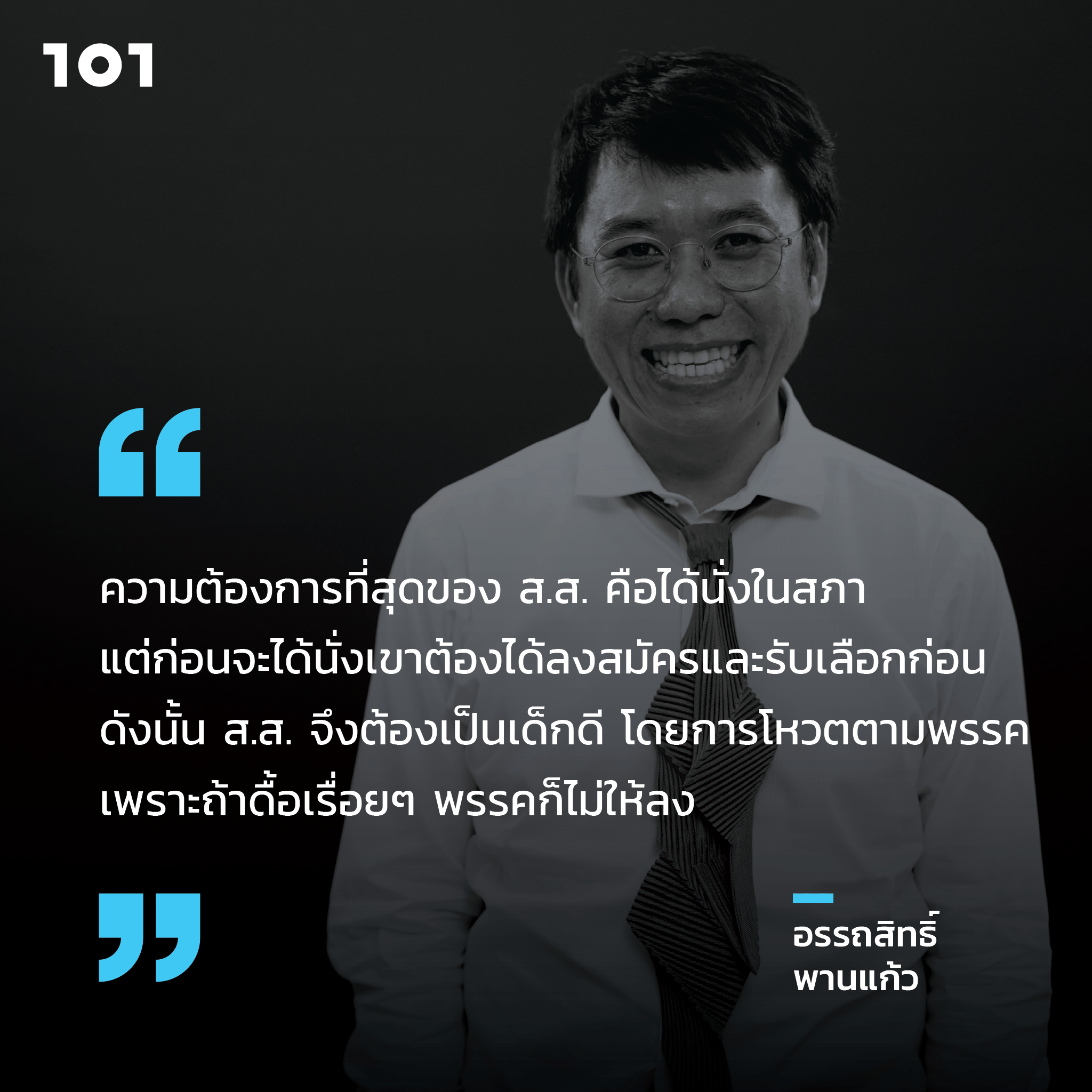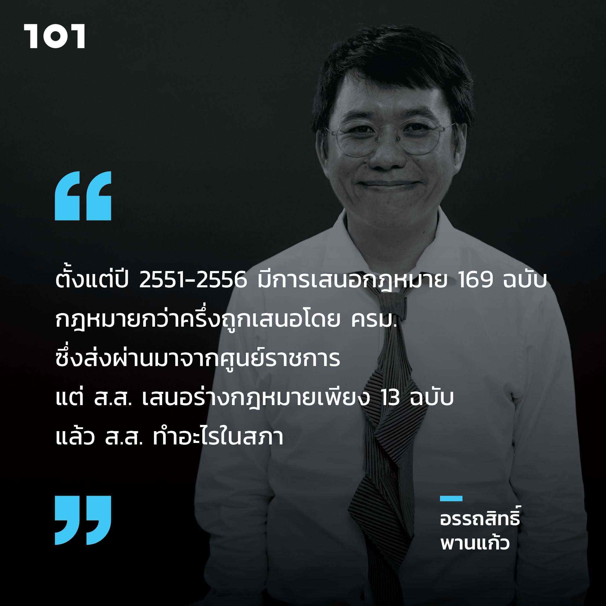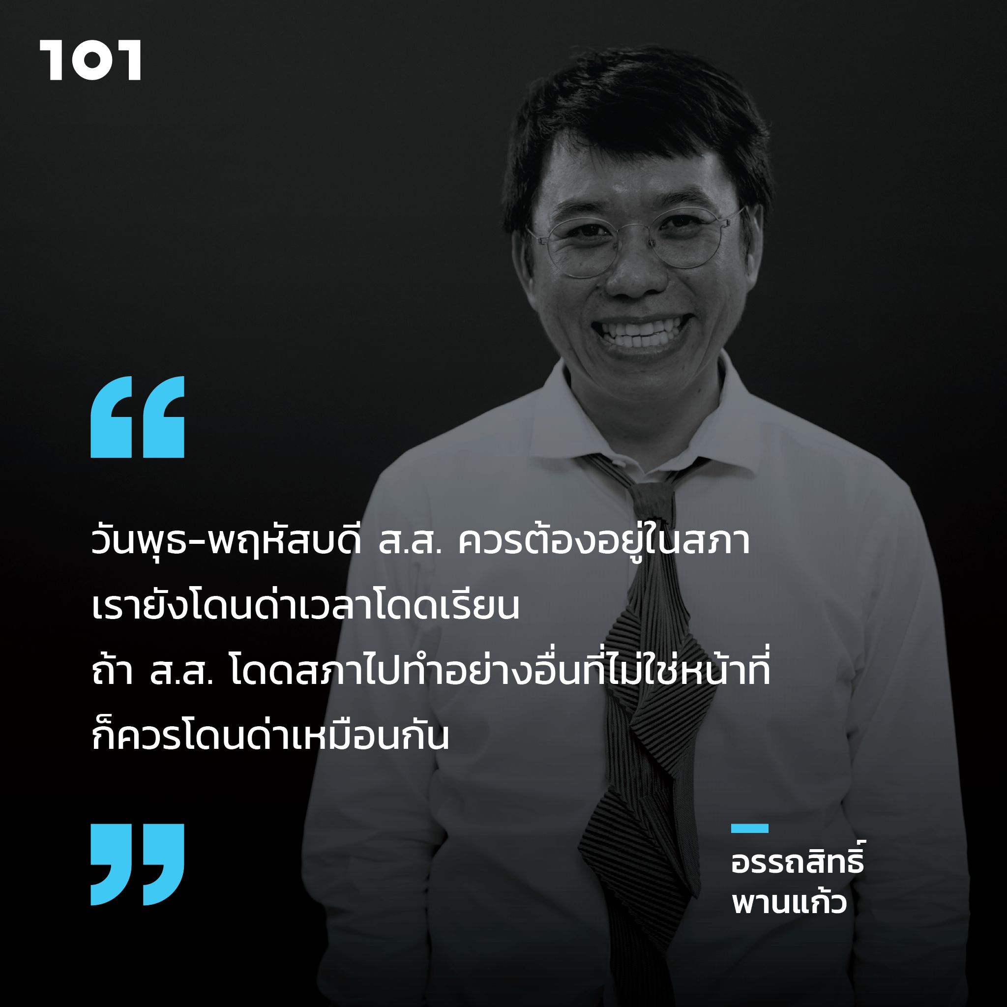 101 เก็บข้อสังเกตจากงานวิจัยและทัศนะบางส่วนของ ผศ.ดร.อรรถสิทธิ์ พานแก้ว คณะรัฐศาสตร์ มหาวิทยาลัยธรรมศาสตร์ และหัวหน้าศูนย์วิจัยเครือข่ายข้อมูลการเมืองไทย (Thailand Political Data Base – TPD) ในรายการ 101 one on one ep.85 “จับตาการทำหน้าที่ ส.ส.ในสภาผู้แทนฯ’