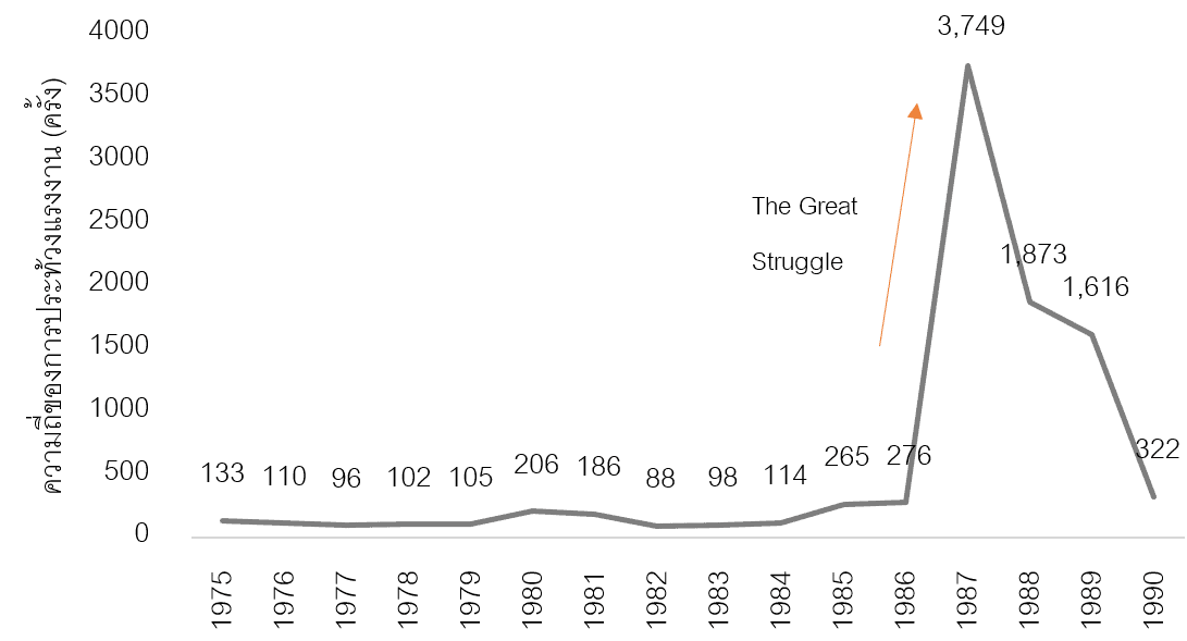 ความเข้มแข็งของขบวนการแรงงานในเกาหลีใต้นี้เองที่ทำให้การกดค่าจ้างของรัฐบาลนายพล Chun ประสบความสำเร็จเพียงระยะสั้นๆ ระหว่างปี 1980-1981 เท่านั้น หลังจากนั้น การเติบของค่าจ้างหลังหักเงินเฟ้อ (Real earning growth) ปรับตัวสูงขึ้นมากกว่า 5% ต่อเนื่องทุกปีจนสิ้นสุดทศวรรษ (ภาพที่ 5)