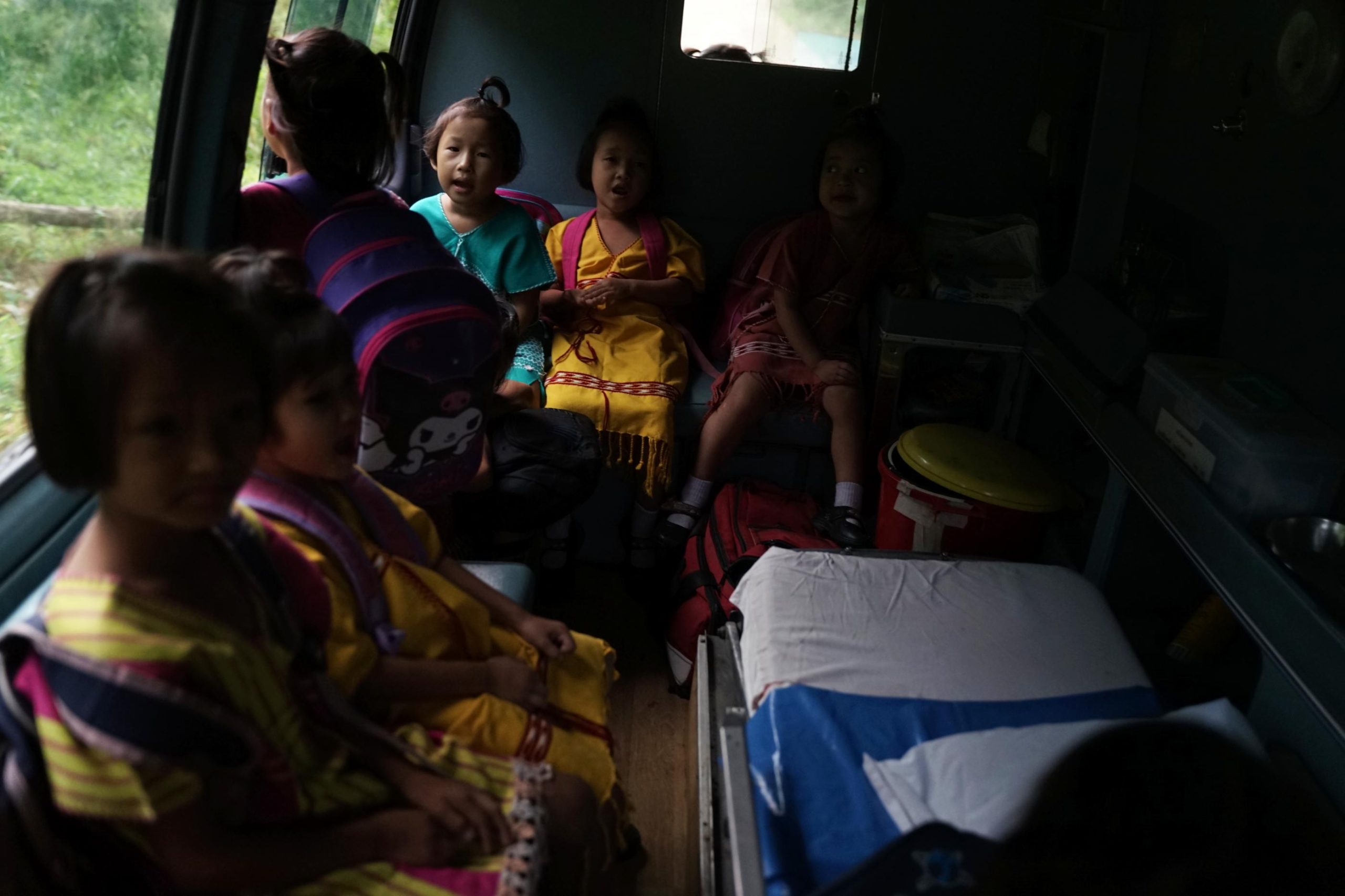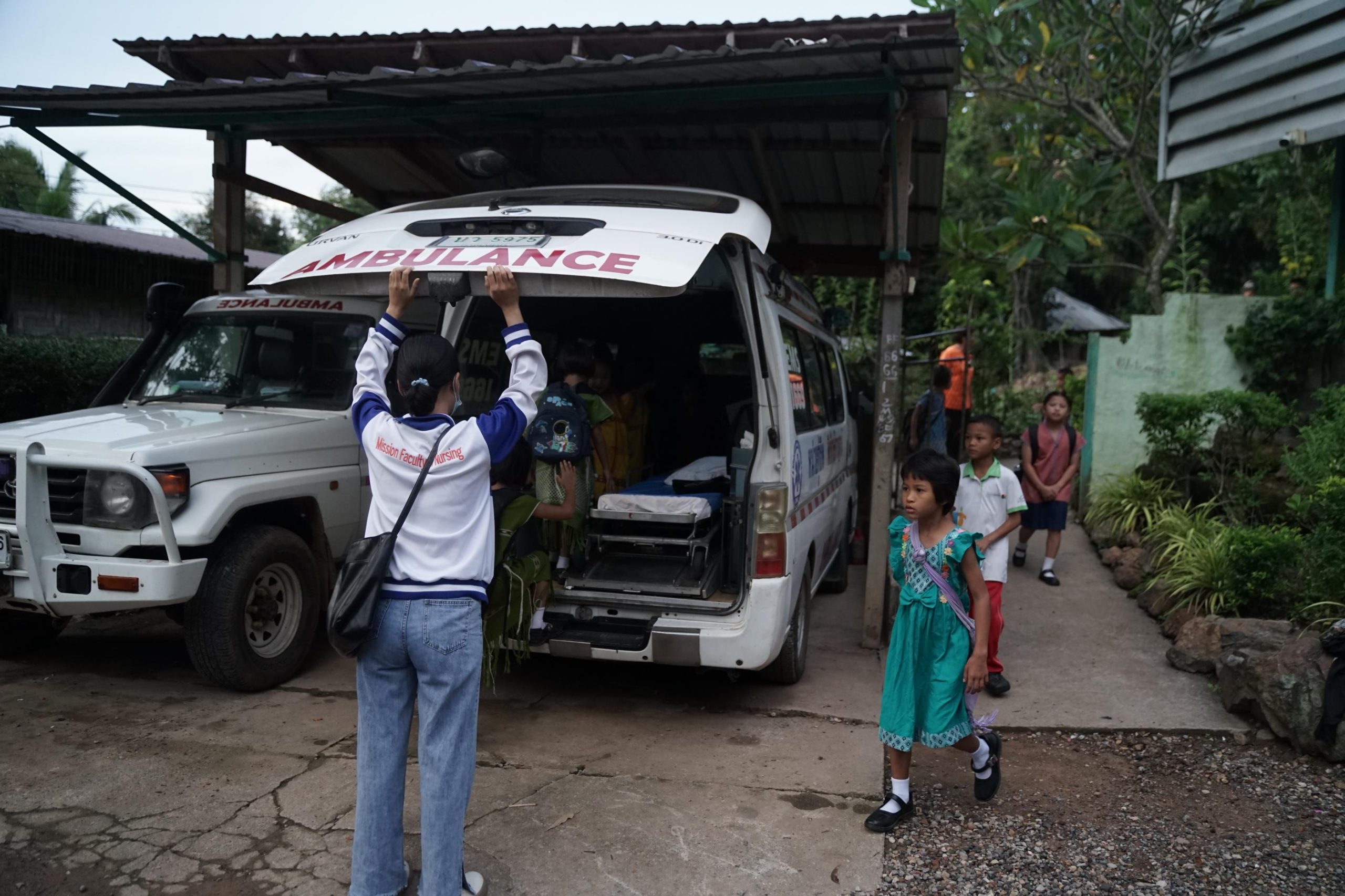 “เด็กส่วนใหญ่ที่เราดูแลคือพ่อแม่เขาไม่สามารถดูแลได้” แคทเธอรินเล่าในขณะที่รถแล่นมาจนถึงจุดผ่านแดน ต.บ้องตี้ “หลายครั้งพ่อแม่เอาเด็กมาทิ้งไว้ที่โรงพยาบาล เด็กบางคนเข้ามาเพราะอยากได้รับการศึกษาและมีอนาคตที่ดี”