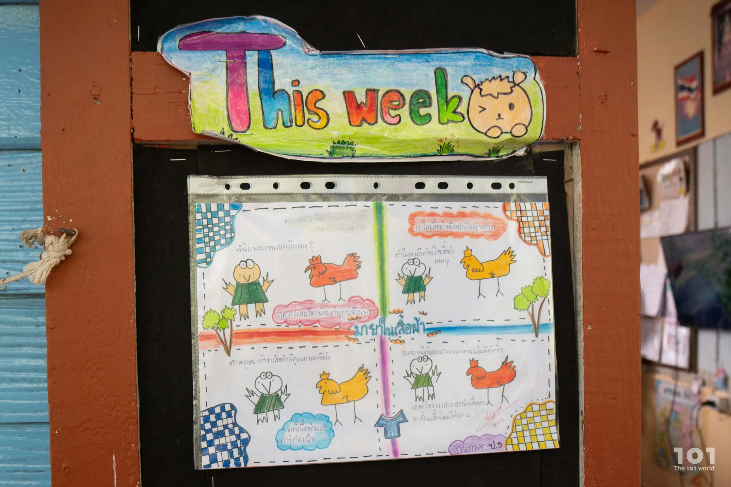 “อย่างชั้นประถม 6 เพิ่งเรียนเรื่องภาวะโลกร้อน สัปดาห์แรกเรียนเรื่องชนิดของป่าไม้ ซึ่งคือวิชาวิทยาศาสตร์ รวมถึงพลศึกษา เพราะเด็กต้องเดินไปเรียนรู้ว่าป่าของหมู่บ้านเราเป็นยังไง มีต้นไม้อะไรบ้าง เรียนประวัติของหมู่บ้าน เรียนภูมิปัญญาชาวบ้าน เป็นการศึกษาแบบที่เด็กได้ลงมือทำจริงๆ เห็นปัญหาจริงๆ เขาพบว่าป่าไม้มีน้อย แล้วปัญหาเกิดจากอะไร ก็เรียนต่อไปอีกว่ามีการตัดไม้ทำลายป่า มีการทำเกษตร เอาป่าไปเป็นที่ทิ้งขยะ พอเห็นขยะเต็มป่าก็มีโจทย์ใหม่ว่าครั้งต่อไปเขาอยากจะเรียนเรื่องขยะ การคัดแยกขยะ” การุณอธิบาย