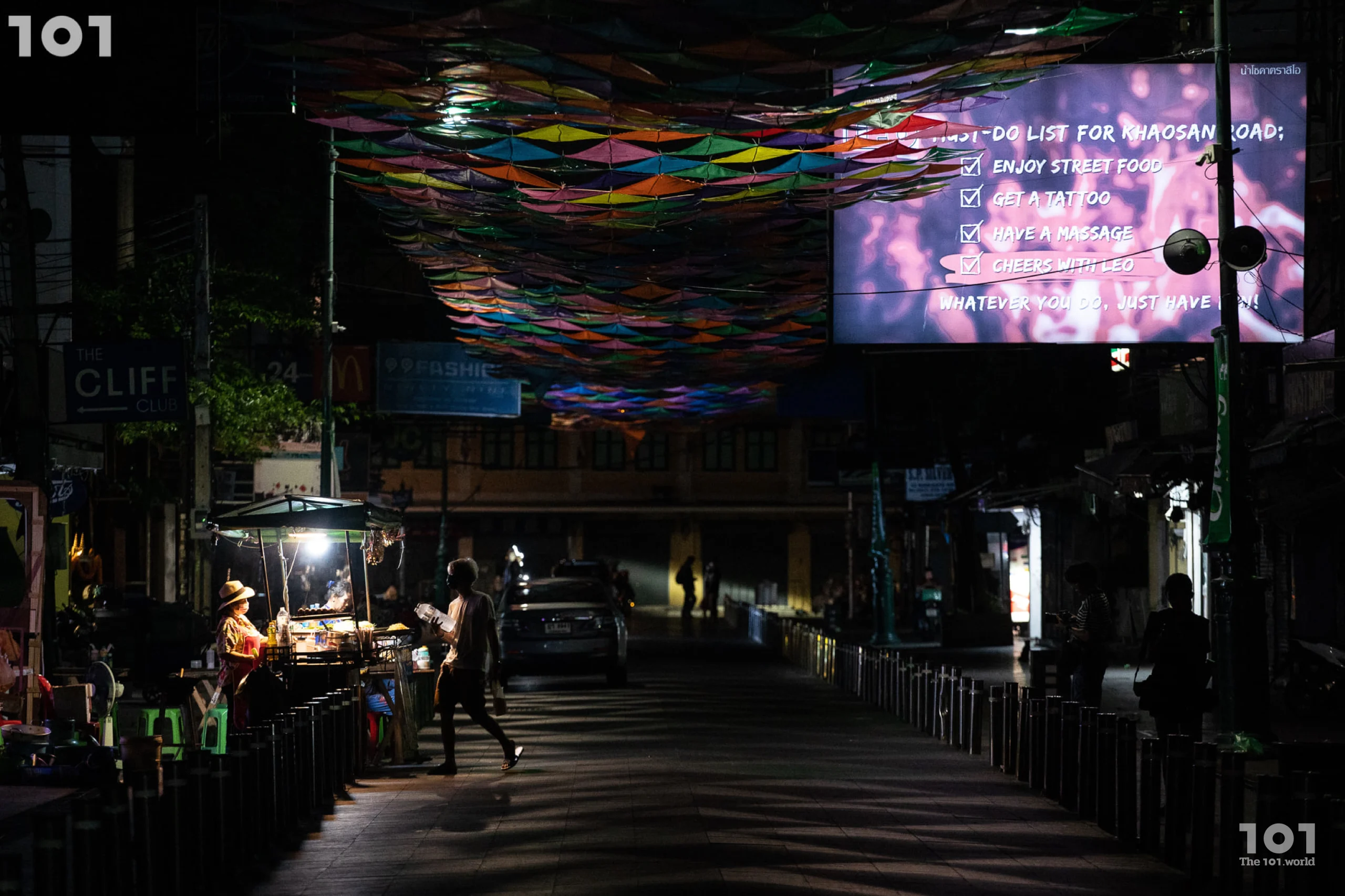 ในช่วงการระบาดของโควิด-19 แสงสว่างยามค่ำคืนในย่านถนนข้าวสารพากันดับวูบลงไปทันตา พร้อมกับเม็ดเงินที่หายไปจากเดิมเกือบ 100% ตลอดช่วงเวลากว่า 2 ปีของการระบาด