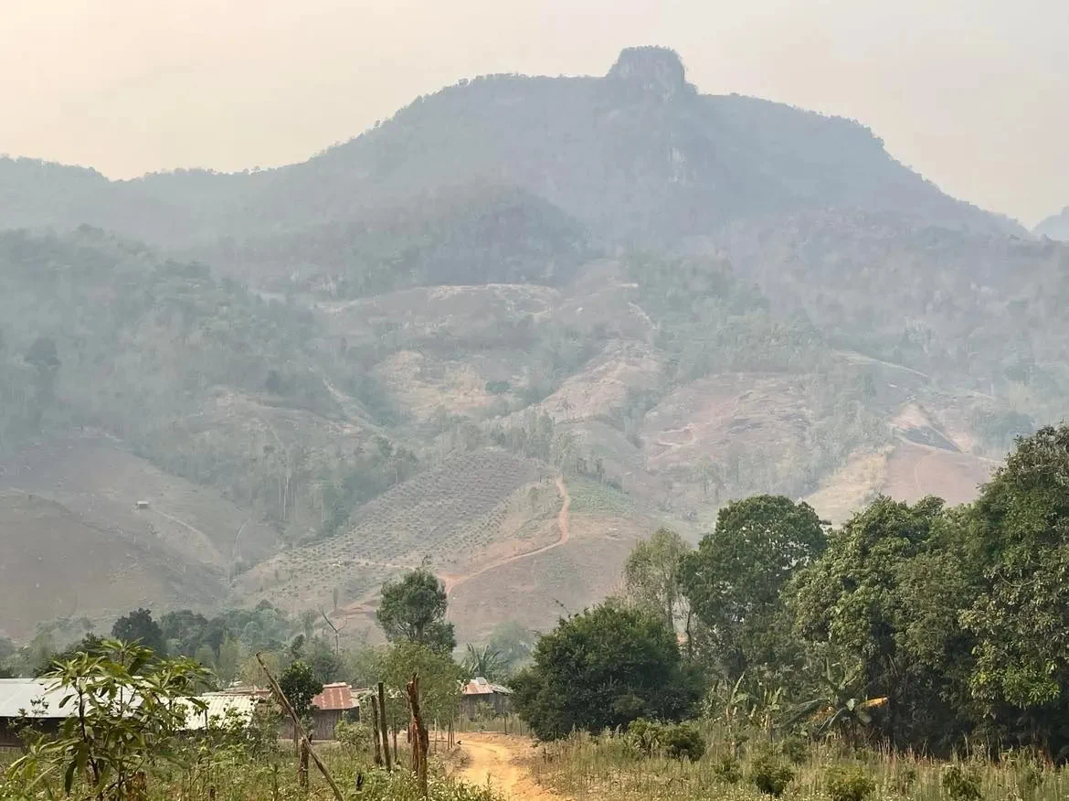 พื้นที่ตรงนั้นหลายร้อยไร่ราบเรียบโล่งเตียนจากการเผาซากไร่ เพื่อเตรียมพื้นดินเพาะปลูกในเดือนพฤษภาคมที่ฝนจะเริ่มตก