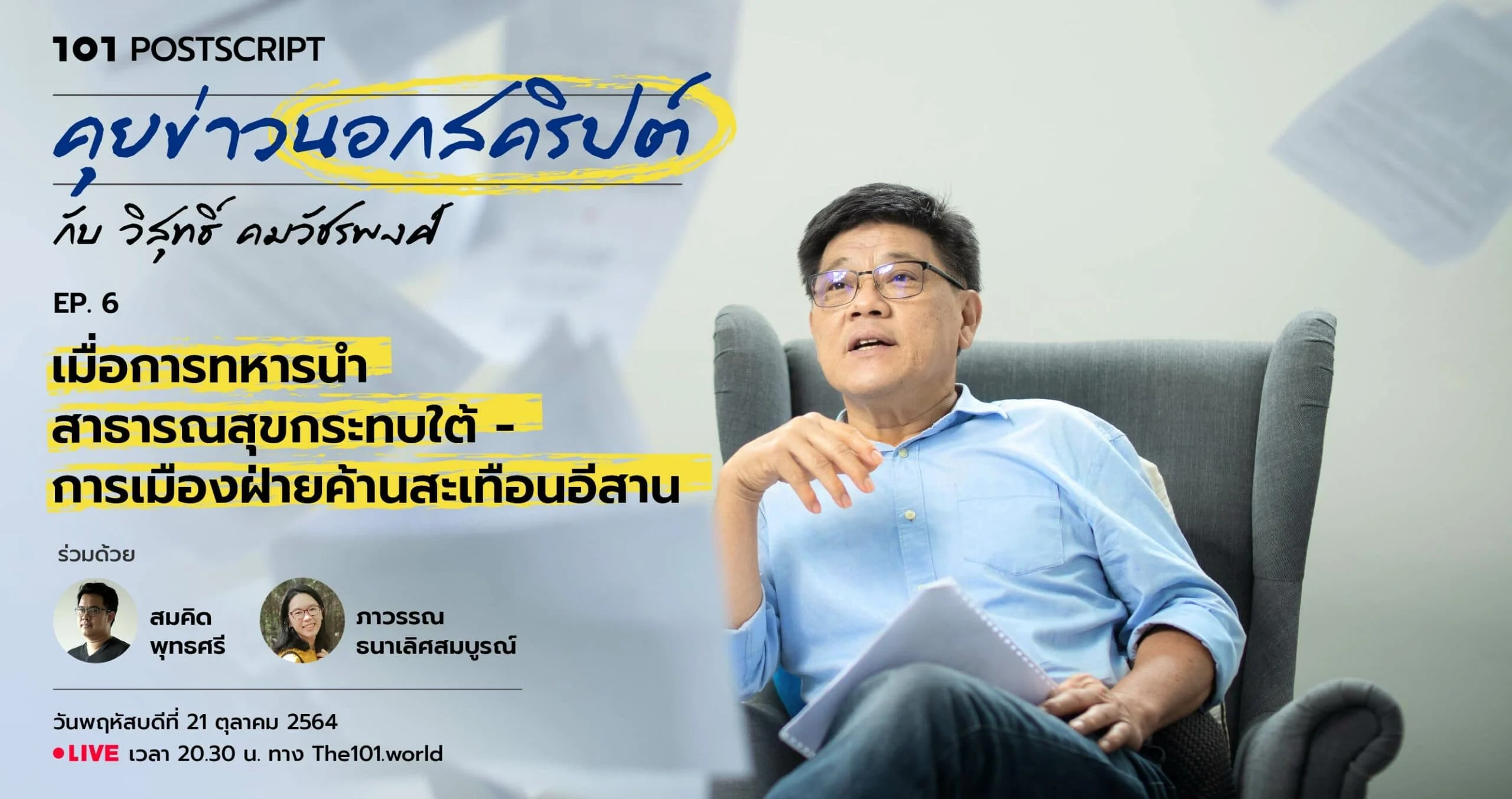 28 Oct 2021101 POSTSCRIPT คุยข่าวนอกสคริปต์ กับ วิสุทธิ์ คมวัชรพงศ์ EP.6 : เมื่อการทหารนำสาธารณสุขกระทบใต้ – การเมืองฝ่ายค้านสะเทือนอีสาน