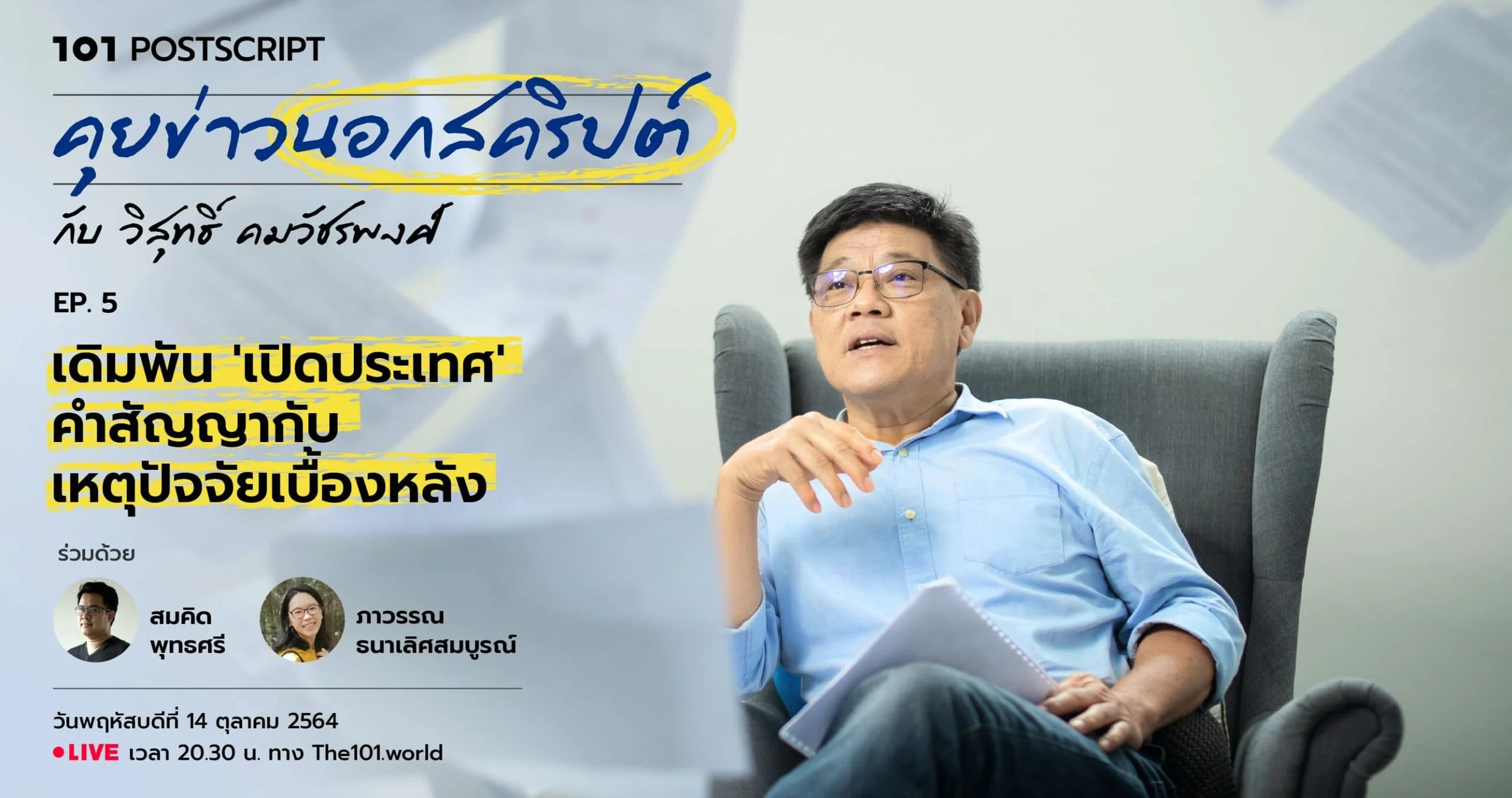 21 Oct 2021101 POSTSCRIPT คุยข่าวนอกสคริปต์ กับ วิสุทธิ์ คมวัชรพงศ์ EP.5 : เดิมพัน ‘เปิดประเทศ’ คำสัญญากับเหตุปัจจัยเบื้องหลัง