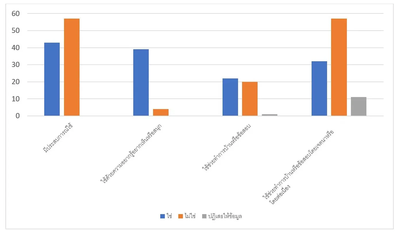 สมมติเราตั้งเกณฑ์ฟันธงแบบหยาบๆ ไว้ก่อนว่า การใช้ ChatGPT ทำการบ้านหรือข้อสอบโดยเจตนา ถือว่าเข้าข่ายโกง จะเห็นว่าหนึ่งในสามเป็นสัดส่วนที่ไม่น้อยเลยนะครับ (เดินมา 3 คน โกง 1 คน) แต่หากยังสนใจเรื่องโกงหรือไม่โกง สิ่งที่บอกได้ชัดเจนคือ ChatGPT ได้เข้ามาเป็นส่วนหนึ่งของชีวิตนักศึกษาระดับมหาวิทยาลัยแล้ว และเดาได้ไม่ยากว่าแนวโน้มนี้น่าจะเพิ่มขึ้นเรื่อยๆ