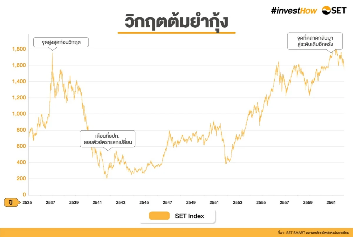 ชาร์ตแสดงการเติบโตของดัชนีตลาดหุ้นไทยช่วงปี 2535-2561 ข้อสังเกตคือ ระหว่างปี 2545-2547 เป็นช่วงที่ดัชนีหุ้นไทยเพิ่มขึ้นเป็นอย่างมาก | ที่มา SET Investnow