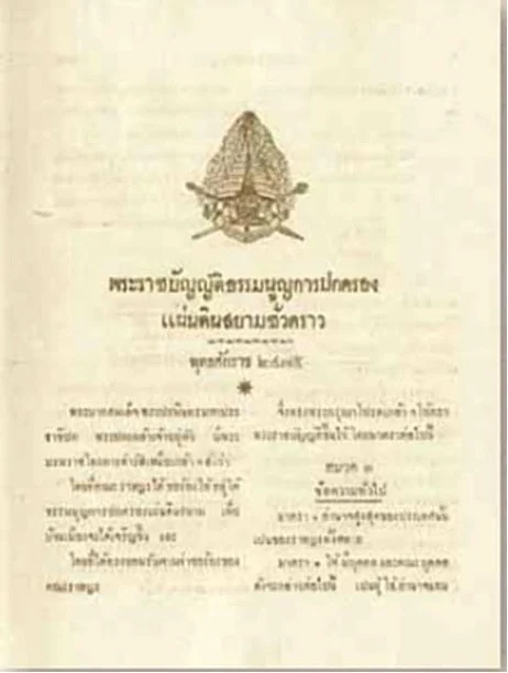 สยามรัฐเปลี่ยนแปลงการปกครองแผ่นดินอย่างมีพระราชาธิบดีอยู่ใต้พระธรรมนูญการปกครอง ภาค 1 พ.ศ. 2475[12]