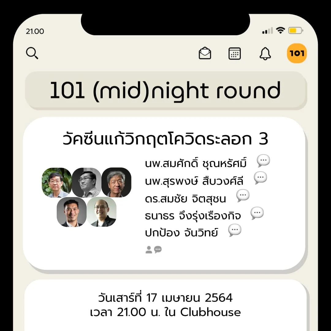 101 ชวนค้นหาทางออกจากวิกฤตโควิดรอบล่าสุด (และรอบต่อๆ ไป) — แผนวัคซีนควรเดินอย่างไรต่อ นโยบายควบคุมโรคและนโยบายเศรษฐกิจควรวางจังหวะก้าวอย่างไร