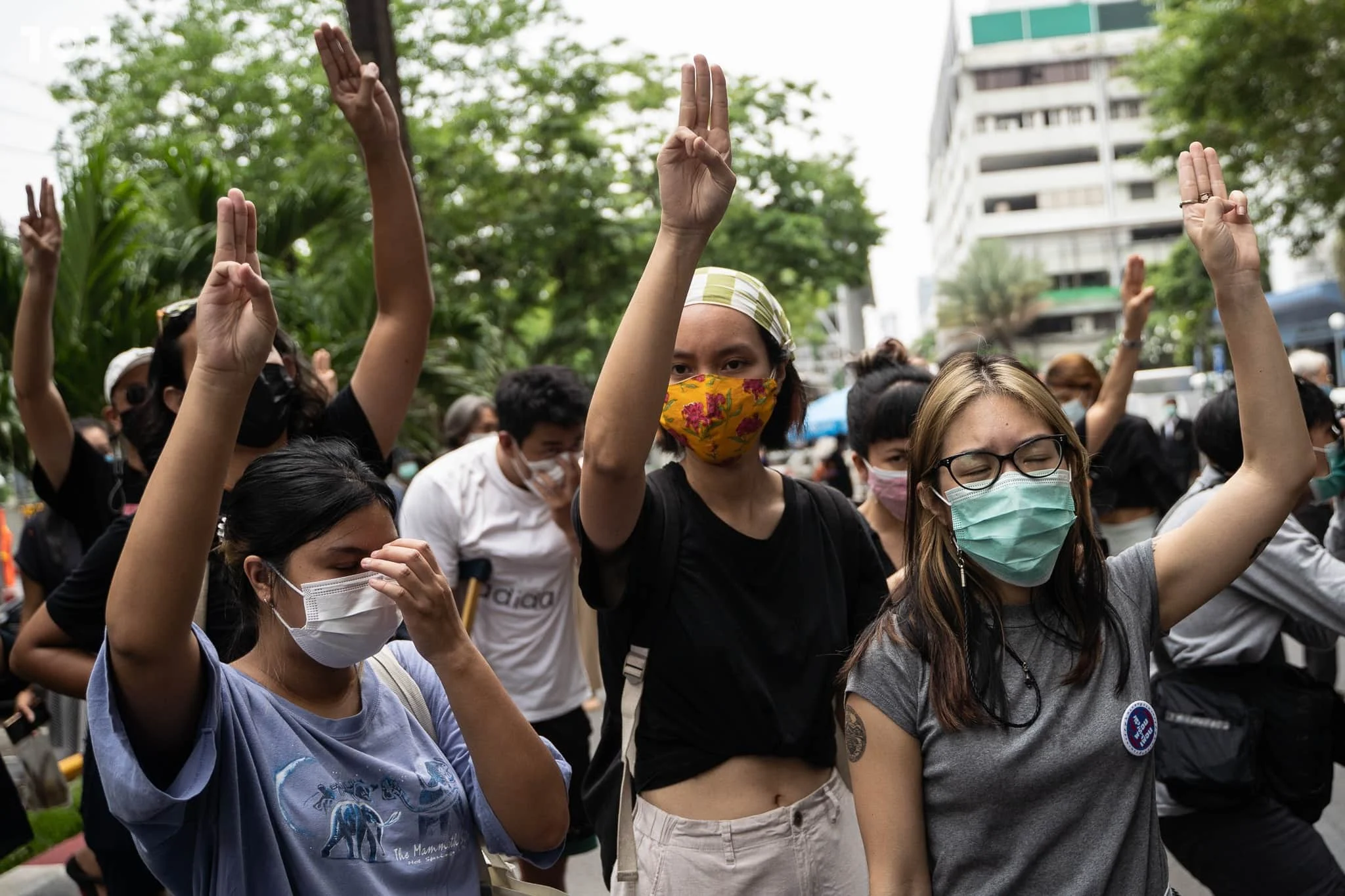 เวลา 13.45 น. เบนจา อะปัญ จากกลุ่มแนวร่วมธรรมศาสตร์และการชุมนุม พร้อมผู้ชุมนุมนำป้ายผ้าปรากฏข้อความว่า