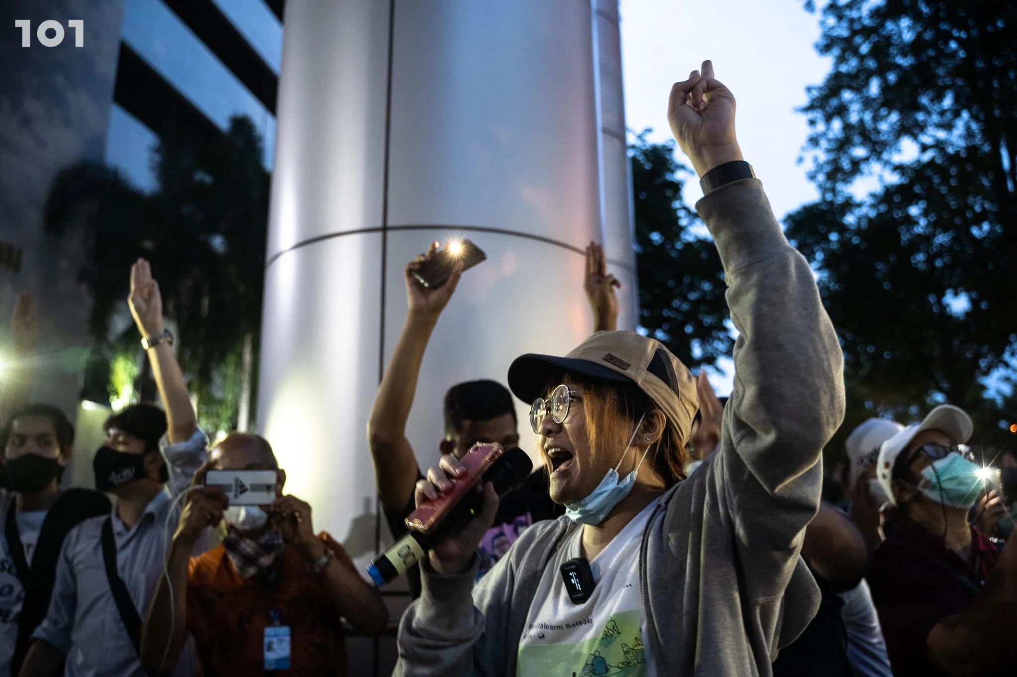 เวลา 18.00 น. แกนนำประกาศให้ผู้ชุมนุมนั่งลงอย่างสงบบริเวณถนนหน้าศาลอาญา พร้อมประกาศว่าหากมีการใช้ความรุนแรงเกิดขึ้น จะไม่มีการตอบโต้ใดๆ การชุมนุมครั้งนี้ยึดมั่นในสันติวิธีและมาเพื่อเรียกร้องความยุติธรรมให้แก่ผู้ถูกคุมขัง ด้านฝั่งเจ้าหน้าที่ตำรวจมีการเคลียร์พื้นที่บริเวณบันไดหน้าศาลอาญา พร้อมตรึงกำลังเข้ม
