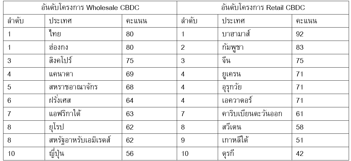 สำหรับการจัดอันดับความพร้อมในการใช้เงินดิจิทัลฝั่ง Retail นั้น PwC ให้คะแนนประเทศบาฮามาสและประเทศกัมพูชา มีความพร้อมในการใช้เงินดิจิทัลของธนาคารกลางสำหรับประชาชน เป็นอันดับ 1 และ 2 ของโลกตามลำดับ จากการที่ประเทศทั้งสองได้นำ CBDC ให้ประชาชนทั่วไปใช้งานกันแล้วตั้งแต่ปลายปีก่อน โดยเงินดิจิทัลของบาฮามาสมีชื่อว่า Sand Dollar ส่วนโครงการ Retail CBDC ของกัมพูชามีชื่อเรียกว่า Bakong