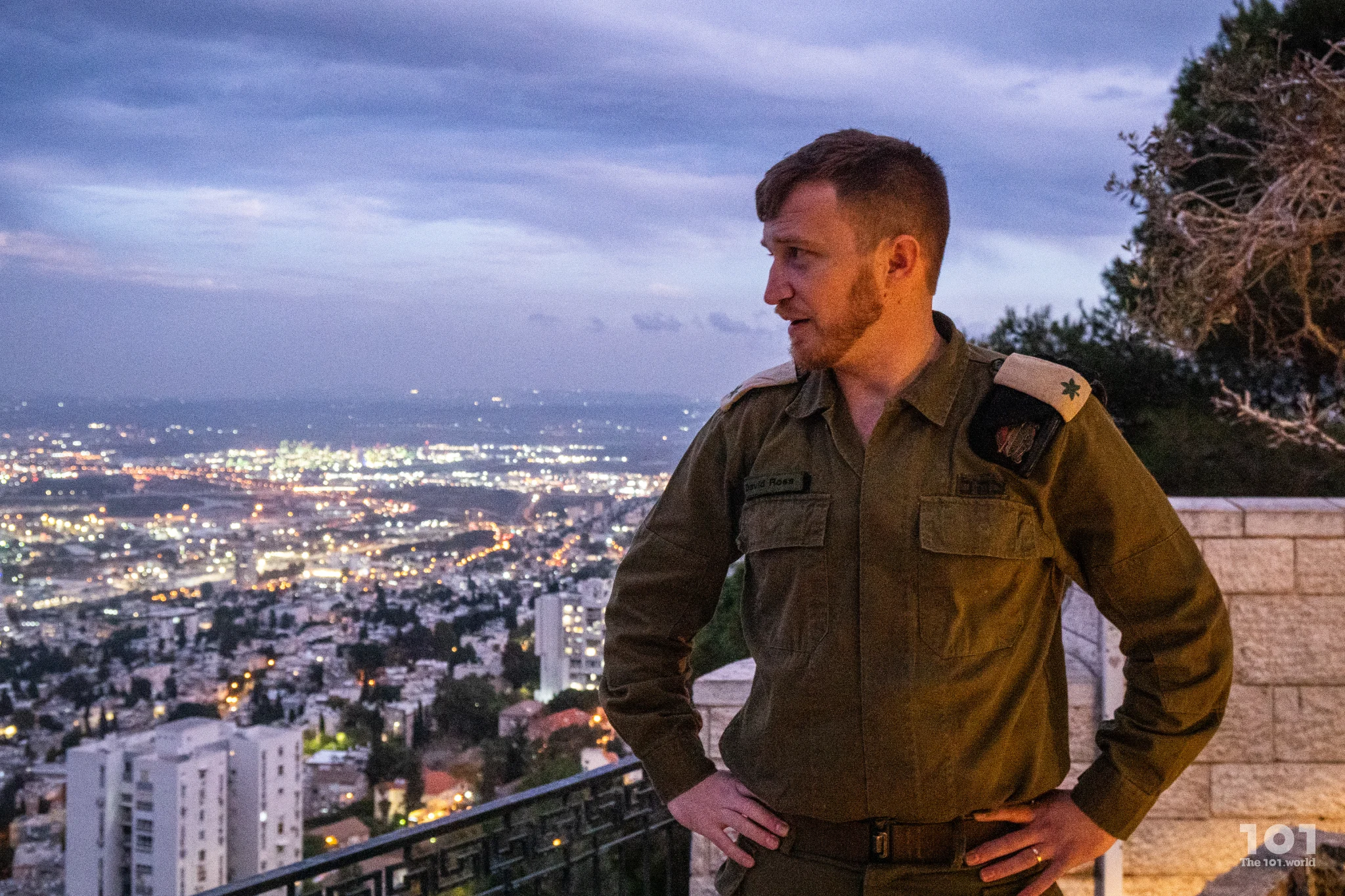 เดวิด รอสส์ (David Ross) โฆษกแห่งกองกำลังป้องกันประเทศอิสราเอล (Israel Defense Force หรือ IDF) พูดพร้อมผายมือชี้นิ้วไปยังทิวทัศน์ของเมืองไฮฟา (Haifa) ในเบื้องล่างของเทือกเขาคาร์เมล (Mount Carmel) ที่เรายืนอยู่