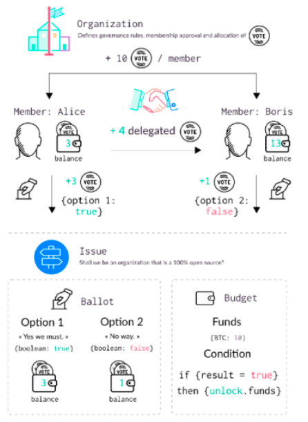 แต่ต่างออกไปที่ระบบนี้ถูกเรียกว่า ‘Social Smart Contract’ ที่ตั้งอยู่บนฐานของเทคโนโลยี Ethereum1 ซึ่งทำได้มากกว่าแค่การโหวตสอบถามความคิดเห็น แต่ยังนำไปใช้ได้กับเรื่องงบประมาณรัฐได้ด้วย!