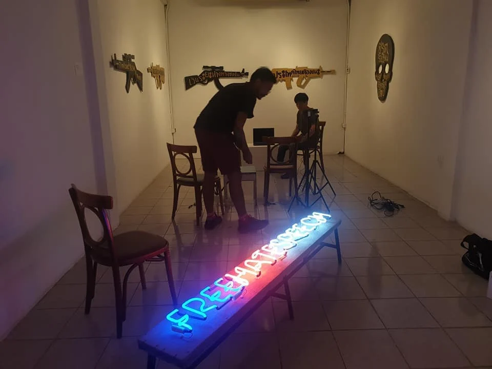 เริ่มจากได้คุยกับพี่ส้ม (สมรัก ศิลา) ที่เป็นคิวเรเตอร์และเจ้าของ WTF Gallery ซึ่งจัดนิทรรศการ Conflicted Visions ที่มีศิลปินที่มีขั้วการเมืองทั้งสองขั้วมาแสดง งานนี้เคยแสดงก่อนหน้านี้แล้วครั้งหนึ่ง พอมาแสดงรอบสอง พี่ส้มเห็นว่ามันก็ยังมีความตึงเครียดที่สูงมาก ไม่อยากจะเชื่อเลยว่าขนาดผ่านมาหลายปี แต่ทุกอย่างยังเข้มข้นเหมือนเดิม เขาก็คิดว่าจะไม่มีทางเลยหรือที่คนคิดต่างทางการเมืองจะคุยกันได้ เขาอยากจะทำลายความเชื่อที่ว่าเราคุยกันไม่ได้ จึงเกิดเป็นเวิร์กชอปนี้ขึ้นมา และเราก็ตอบรับด้วยความยินดี เพราะเราอยากออกแบบกระบวนการเกี่ยวกับการสื่อสารว่า จะสื่อสารกันอย่างไรให้ไม่ปะทะและทิ่มแทงไปที่ตัวบุคคล แต่ก็สามารถคุยกันได้ในไอเดียที่เห็นต่าง มันมีรายละเอียดอะไรได้บ้าง แต่เรื่องนี้ละเอียดอ่อนมาก เพราะเราไม่รู้ว่าคนที่มาจะเป็นใคร มีพื้นหลังเป็นยังไง เราจึงขอทำเวิร์กชอปทีละคู่ เพราะปกติจะทำเวิร์กชอปทีละ 10-20 คน แล้วเราเป็นผู้นำกระบวนการ แต่คราวนี้เราขอทำเป็นคู่เท่านั้น
