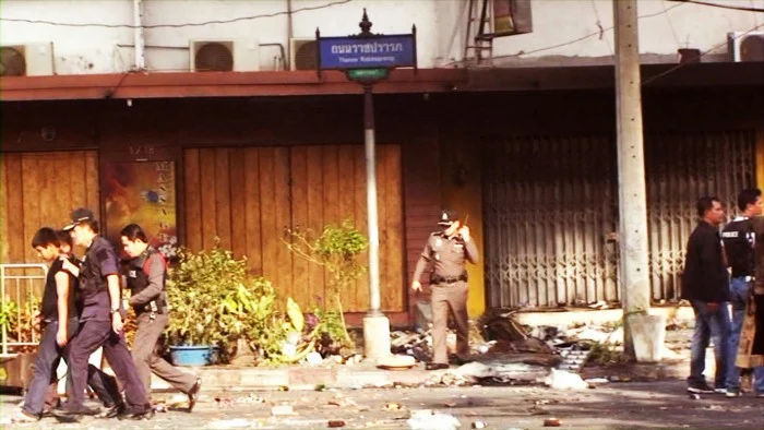 เวลาเป็นตัวแปรสำคัญ ธงชัยอธิบายว่าหลังจากนั้น มีภาพยนตร์หลายเรื่องที่เล่าเกี่ยวกับเหตุการณ์ 6 ตุลา ทั้งในลักษณะเป็นหนังต่อต้านคอมมิวนิสต์ หรือหนังเล่าเปรียบเปรยว่ามันเป็นอีกเหตุการณ์ที่ถูกลืม หากแต่ไม่มีหนังเรื่องไหนใช้ฟุตเตจจากเหตุการณ์จริงไปประกอบตัวหนัง เว้นแต่หนังสองเรื่อง เรื่องแรกคือ ‘ผู้ก่อการร้าย’ (2011) หนังสั้นที่จับภาพชายคนหนึ่งกำลังช่วยตัวเอง ขณะที่คำบรรยายเล่าถึงเหตุการณ์ 6 ตุลา ก่อนที่ภาพจะตัดจากการช่วยตัวเองของชายคนดังกล่าวไปยังภาพของการทำร้ายศพในเช้าวันนั้น