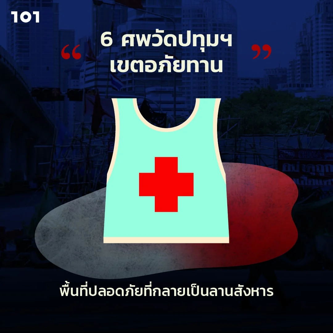 ศอฉ. ประกาศให้วัดปทุมวนารามเป็น ‘เขตอภัยทาน’ ตามที่กลุ่มองค์กรสันติวิธีนำโดยโคทม อารียา ผอ.ศูนย์ศึกษาและสันติวิธี ม.มหิดล เรียกร้อง เพื่อให้เป็นพื้นที่ปลอดภัย โดยเฉพาะผู้ชุมนุมที่เป็นเด็ก ผู้หญิง และผู้สูงอายุ หากผู้ชุมนุมหรือทหารเข้ามาก็ขอให้ปลดอาวุธ โดยมีการขึ้นป้ายไว้อย่างชัดเจน แต่แล้วพื้นที่นี้กลับกลายเป็นลานสังหาร เมื่อเสียงปืนจากรางรถไฟฟ้าดังขึ้นโดยพุ่งเป้าไปที่เขตอภัยทาน