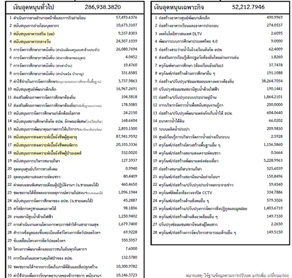 ↑25 | คำนวณจากภารกิจของ อปท. พื้นที่ที่ อปท. ต้องรับผิดชอบ รวมถึงปัญหาที่ อปท. ควรต้องเร่งแก้ไข เช่น อัตราความยากจนในพื้นที่ จำนวนเด็กที่หลุดจากระบบการศึกษา |