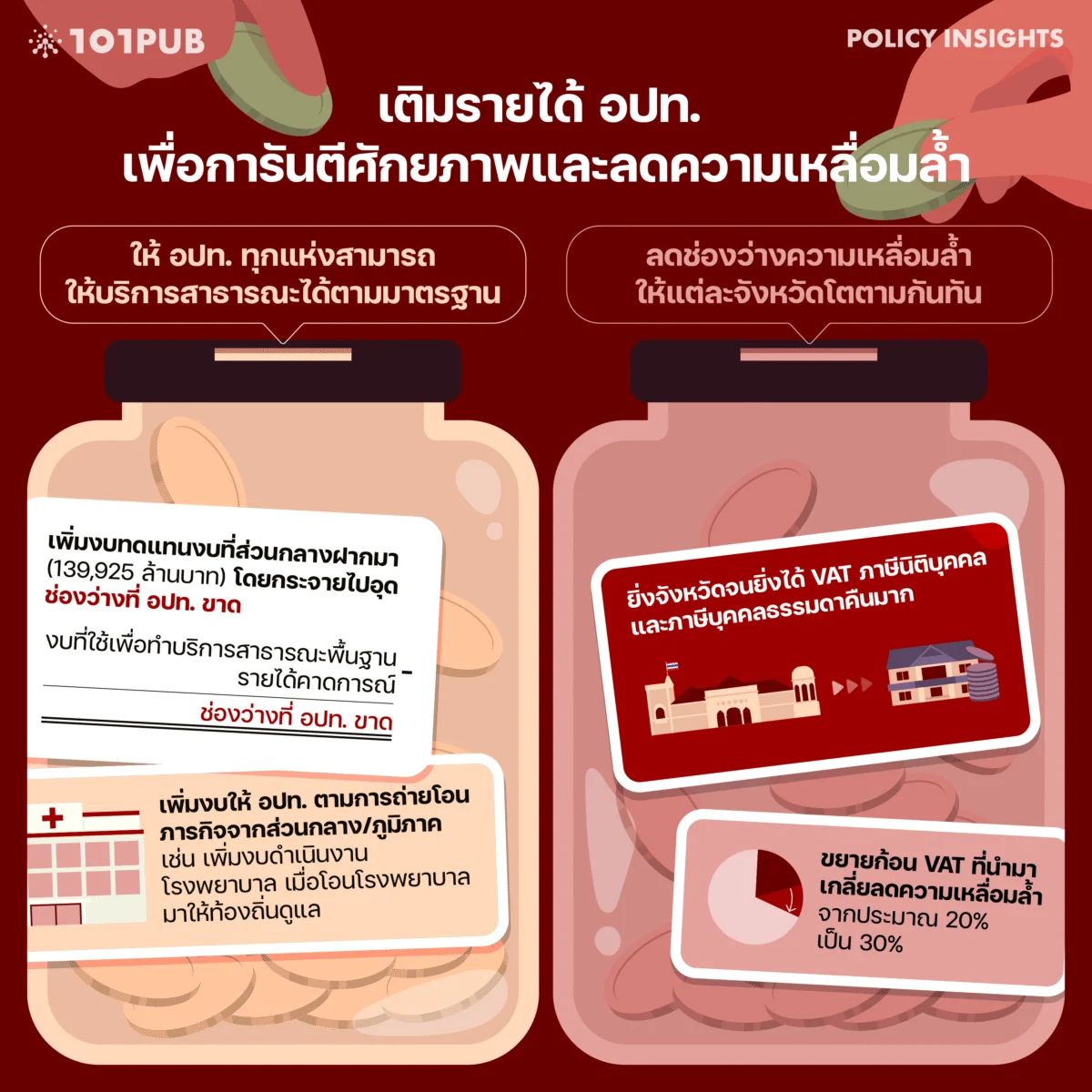 เพิ่มงบอุดหนุนเพื่อเติมรายได้ให้ อปท. ทุกแห่งสามารถให้บริการสาธารณะขั้นพื้นฐานได้อย่างมีมาตรฐาน